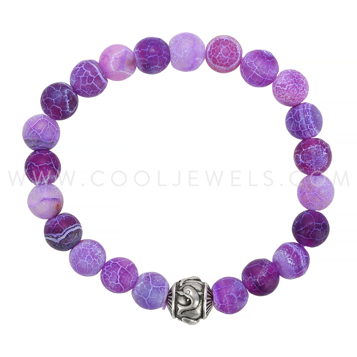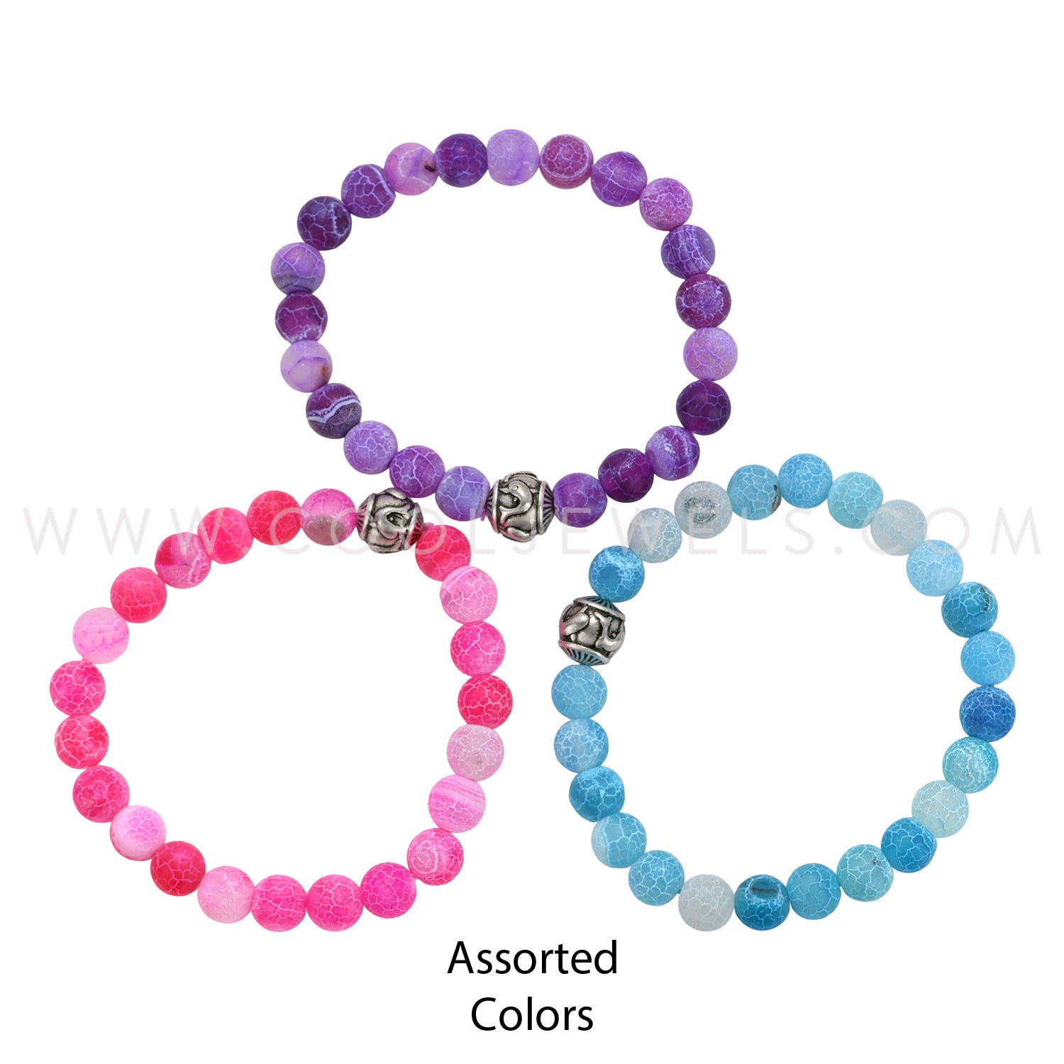 These Assorted Blue, Pink & Purple Colored Beaded Bracelet w/ Dolphin Bead features a colored beaded stretch bracelet with a silver dolphin bead.
