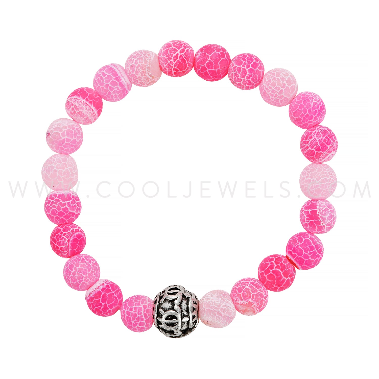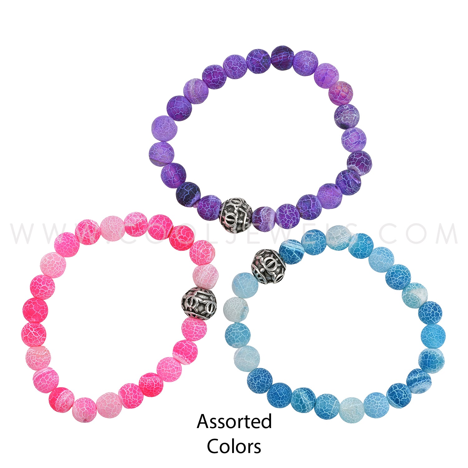 COLORED BEADED STRETCH BRACELET WITH CRACKED ICE COLORED BEADS & TURTLE BEAD