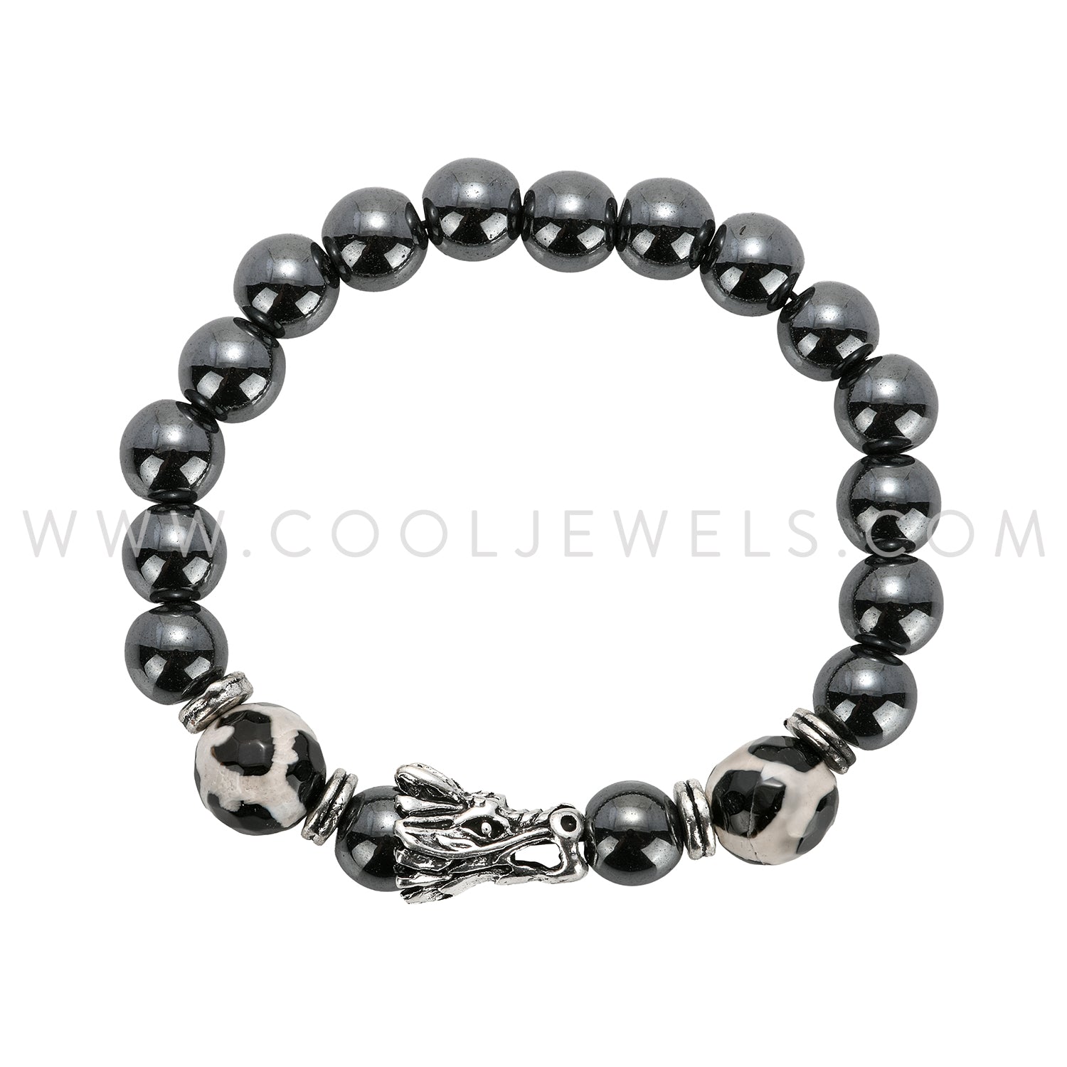 STRETCH BEADED BRACELET WITH DRAGON HEAD PENDANT