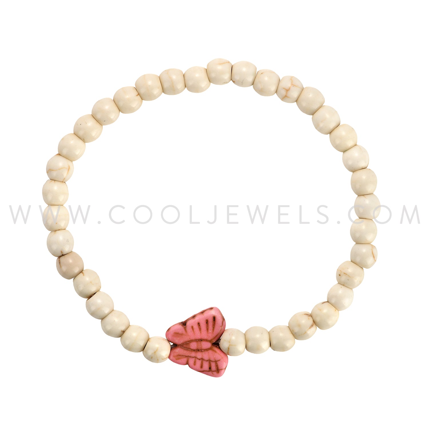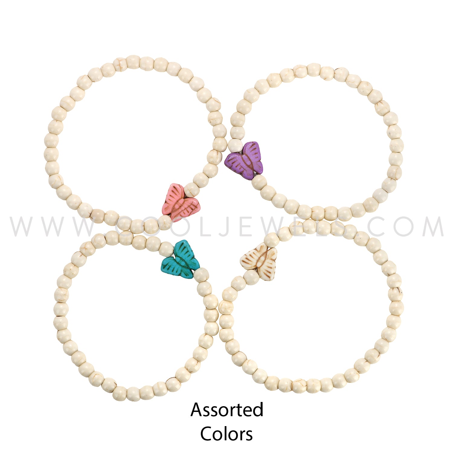 DOUBLE ELASTIC STRETCH BRACELETS WITH STONE BEADS & BUTTERFLY PENDANT ASSORTMENT - CARDED