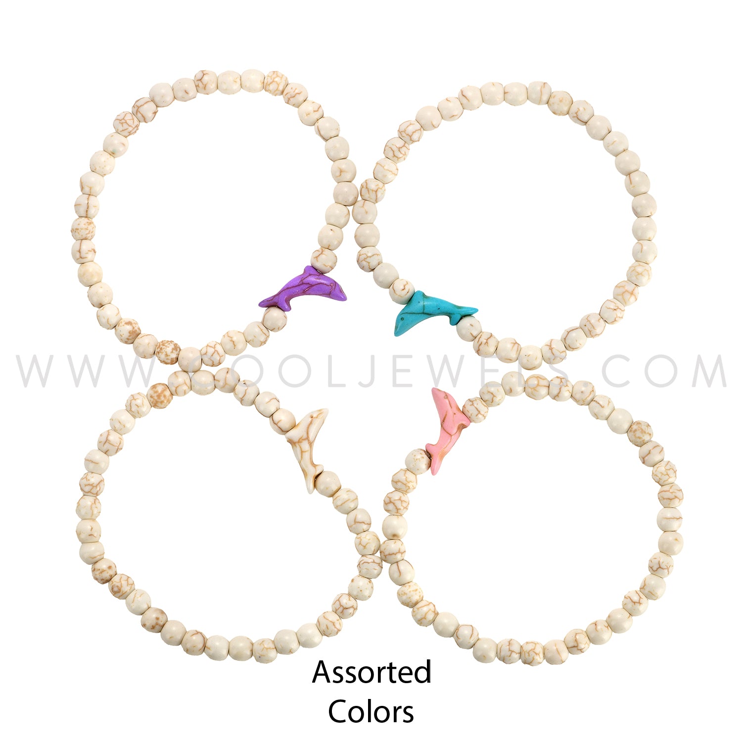 DOUBLE ELASTIC STRETCH BRACELETS WITH STONE BEADS & DOLPHIN PENDANT ASSORTMENT - CARDED