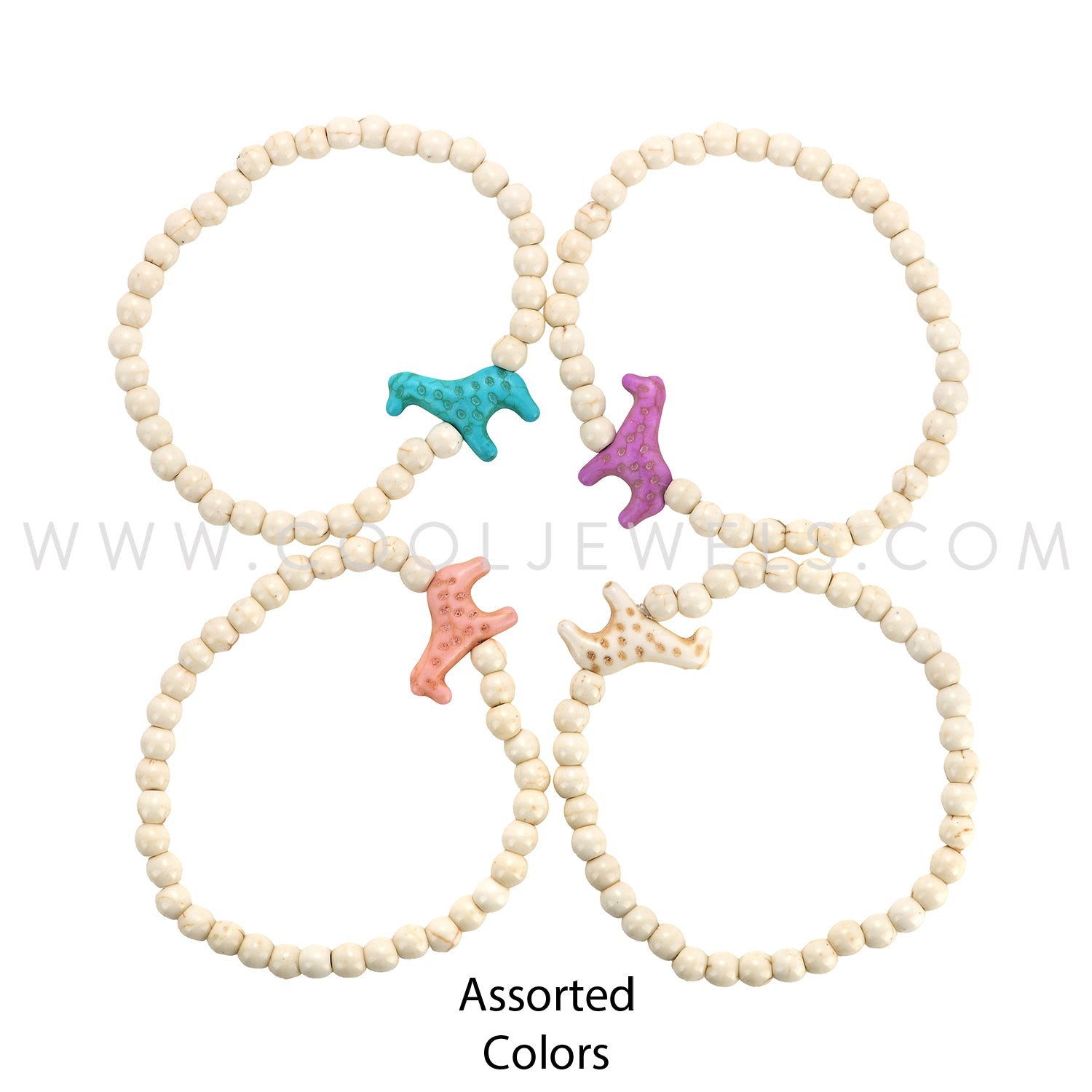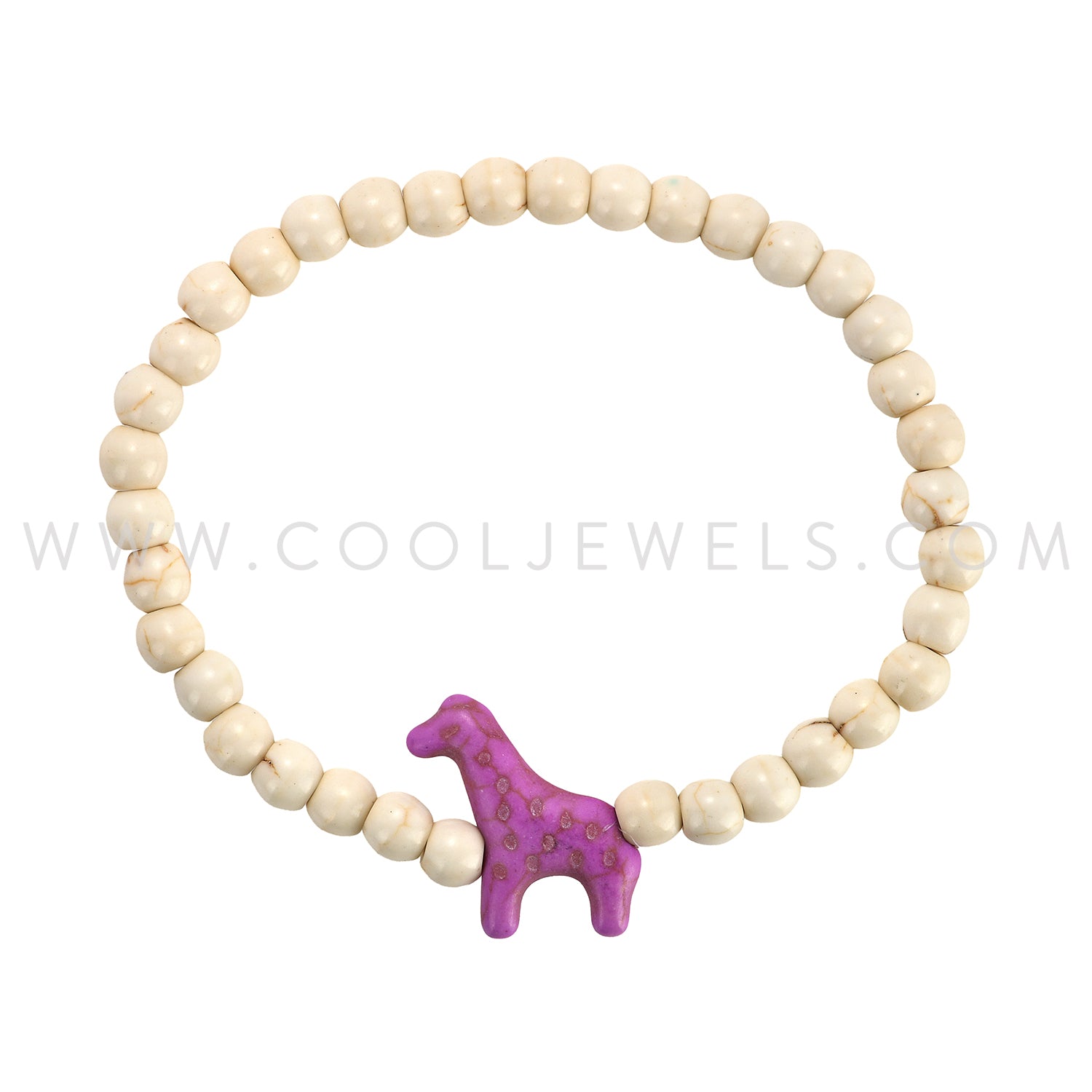 DOUBLE ELASTIC STRETCH BRACELET WITH STONE BEADS AND GIRAFFE PENDANT, ASSORTED AND CARDED