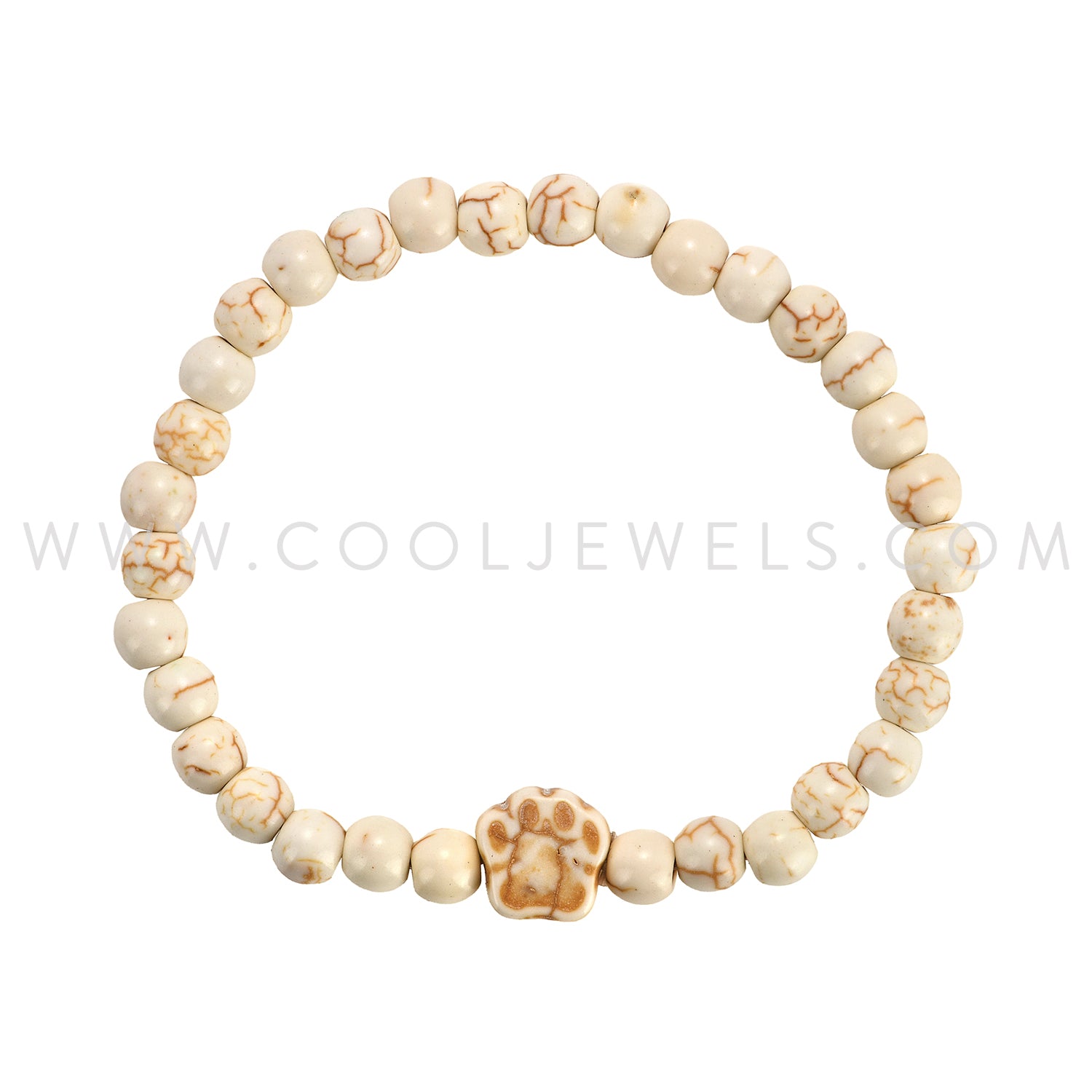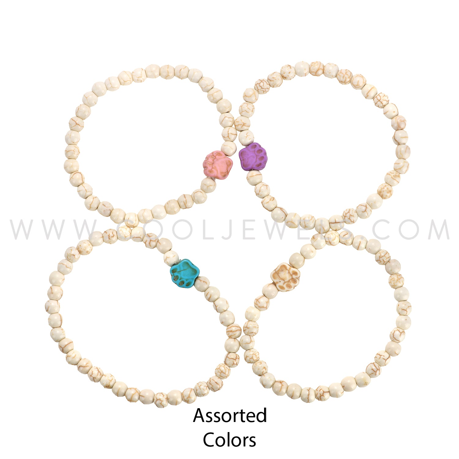 DOUBLE ELASTIC STRETCH BRACELETS WITH STONE BEADS & PAW PENDANT ASSORTMENT - CARDED