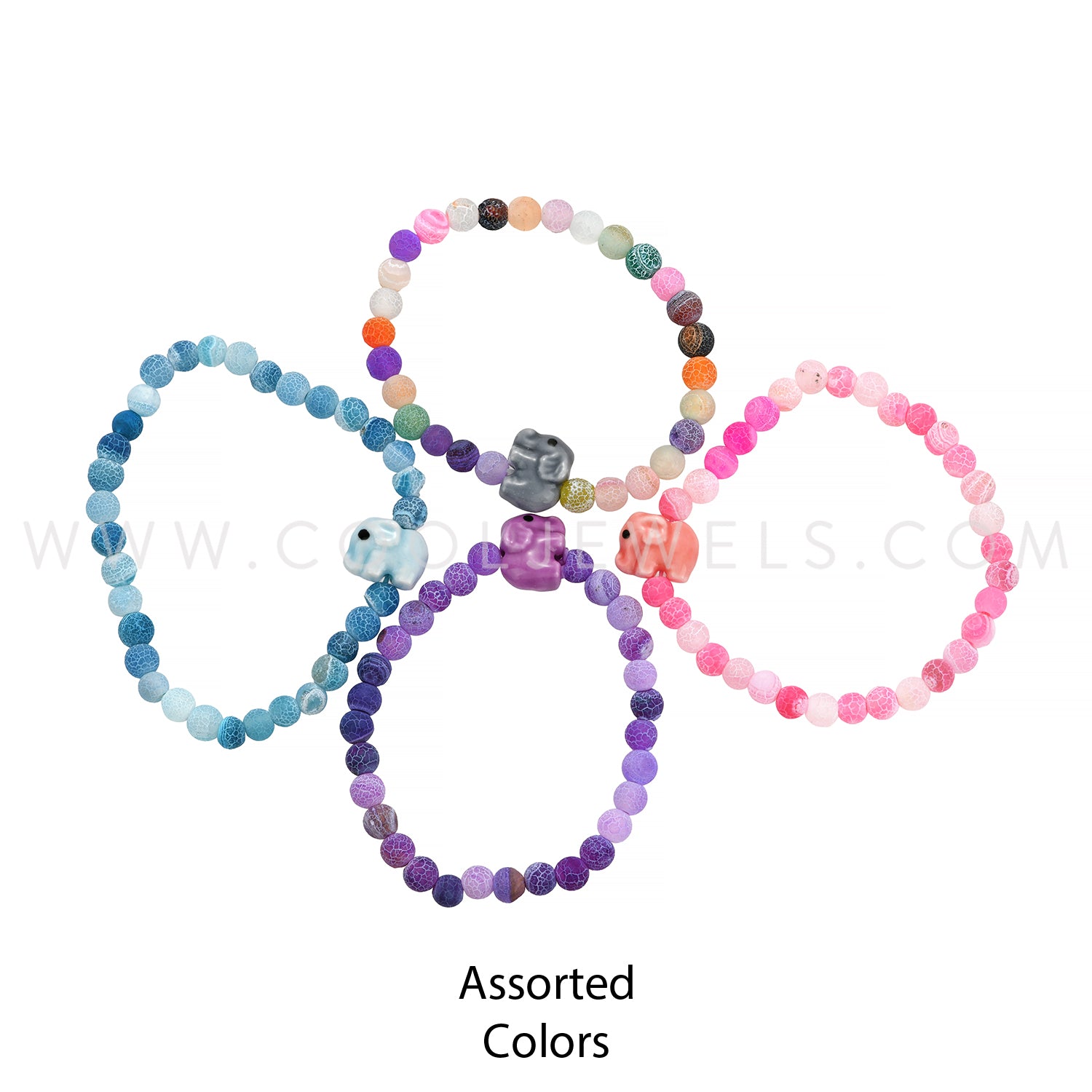 STRETCH BRACELET WITH FROSTED CRACKED AGATE & ELEPHANT BEAD - ASSORTED