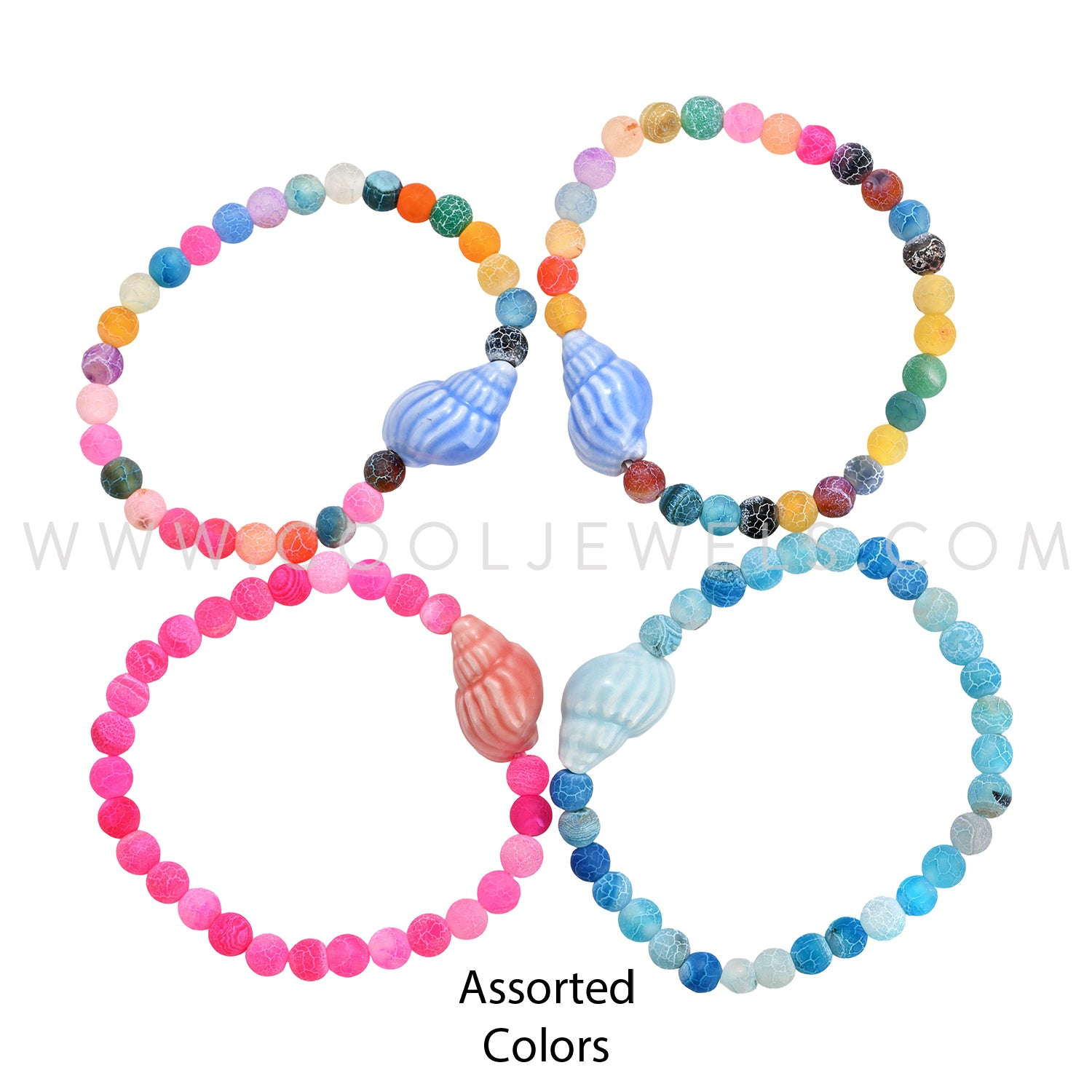 STRETCH BRACELET WITH FROSTED CRACKED AGATE & SEA SHELL BEAD - ASSORTED