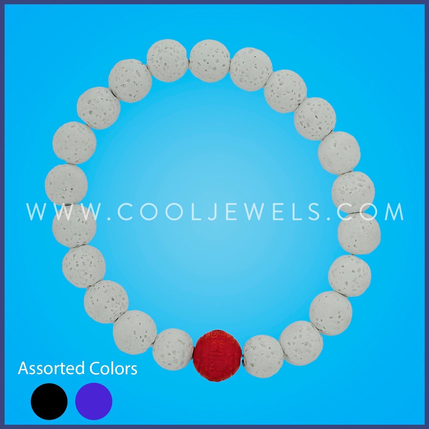 DOUBLE ELASTIC STRETCH BRACELETS WITH LAVA BEADS ASSORTMENT - CARDED