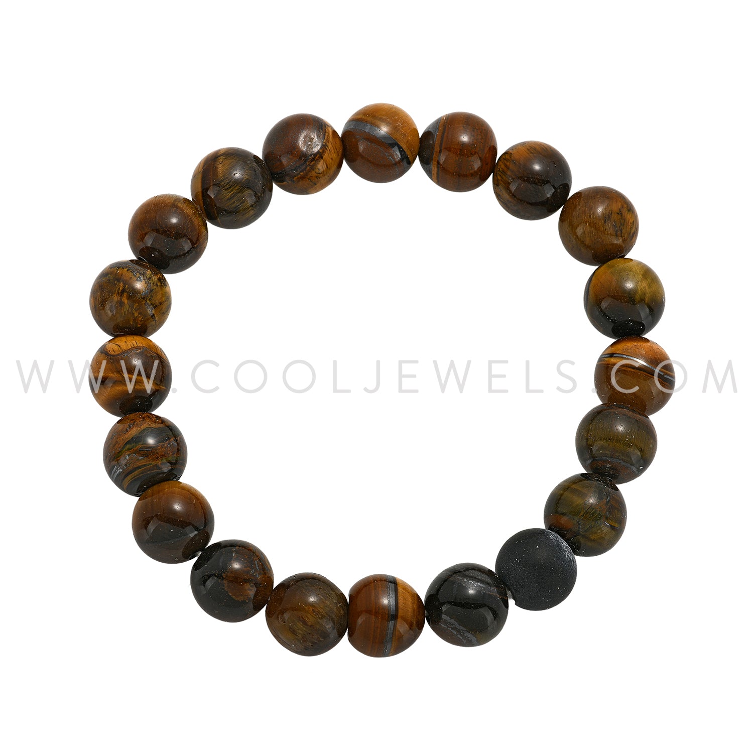 DOUBLE ELASTIC STRETCH BRACELET WITH BROWN TIGER EYE BEADS - CARDED