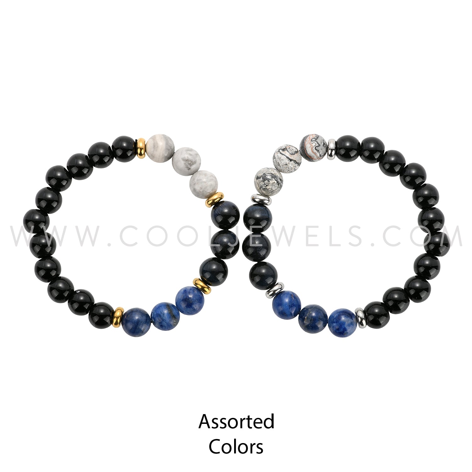 DOUBLE ELASTIC STRETCH BRACELET WITH STONE BEADS ASSORTED - CARDED