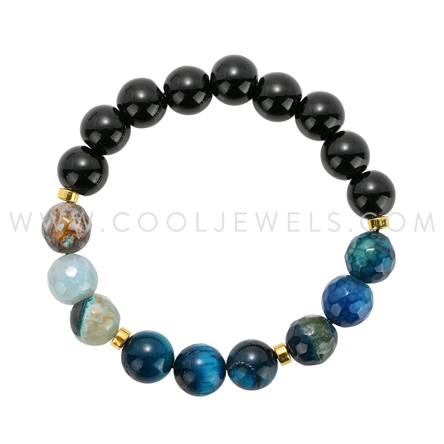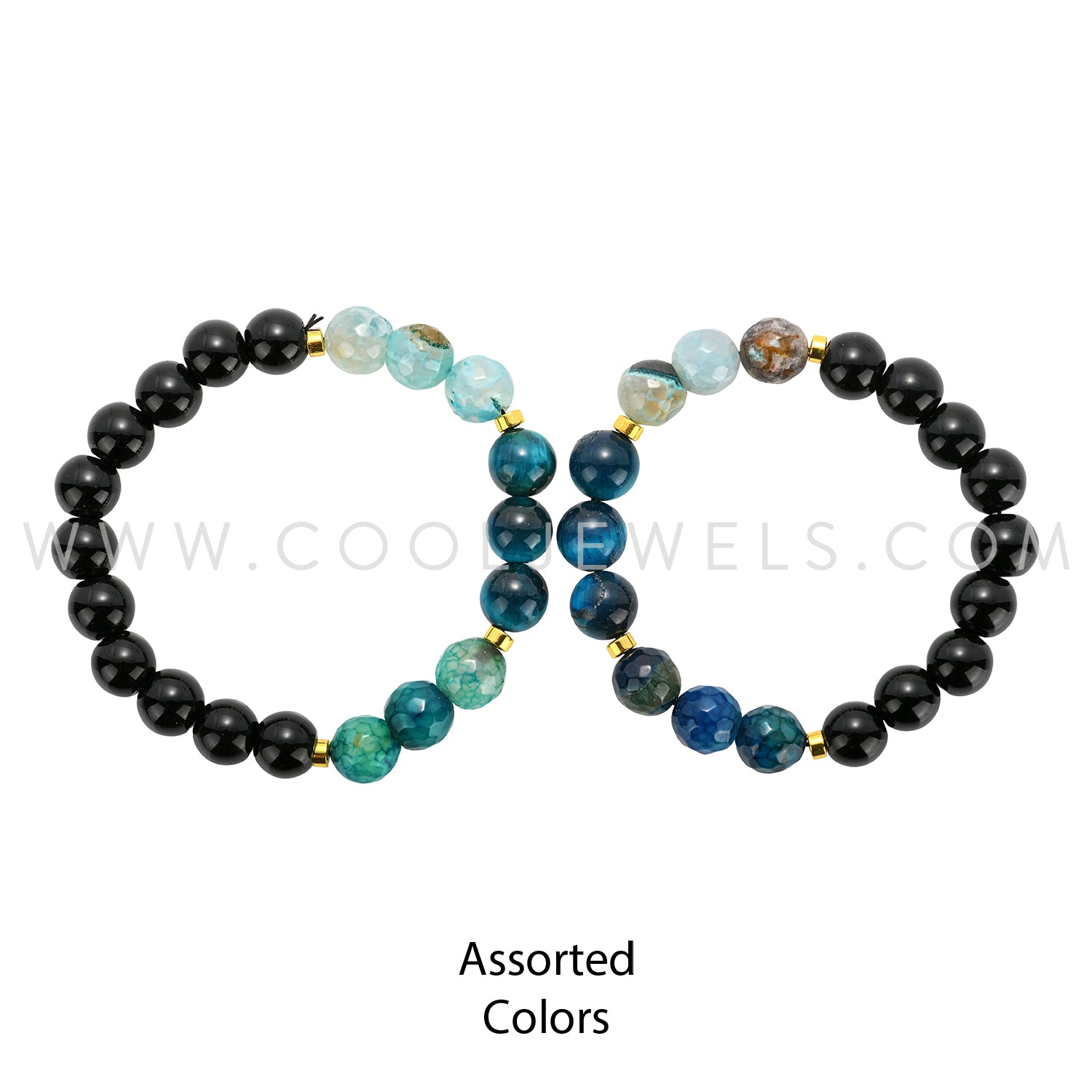 DOUBLE ELASTIC STRETCH BRACELET WITH OBSIDIAN, TIGER EYE, & AGATE BEADS