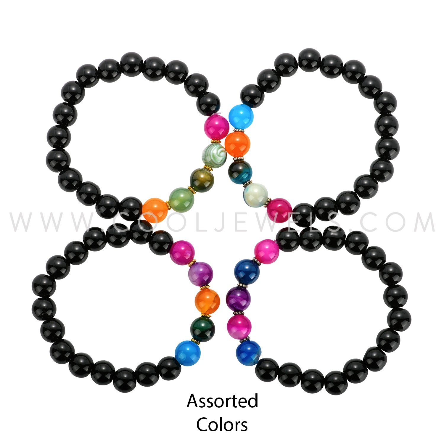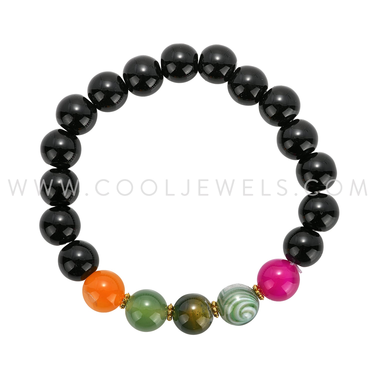 STONE XPRESSION - DOUBLE ELASTIC STRETCH BRACELET WITH OBSIDIAN & AGATE BEADS