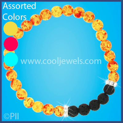 These Assorted Yellow, Red & Turquoise Colored Precious Stone & Lava Bead Stretch Bracelets features colored precious stone beads with rhinestones and lava beads stretch bracelets.