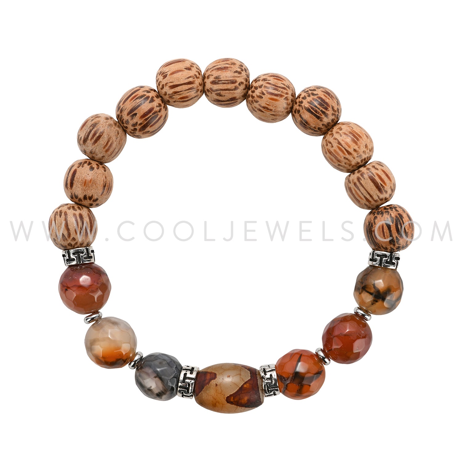 STRETCH BEADED BRACELETS WITH PALM WOOD & AGATE BEADS ASSORTED - CARDED