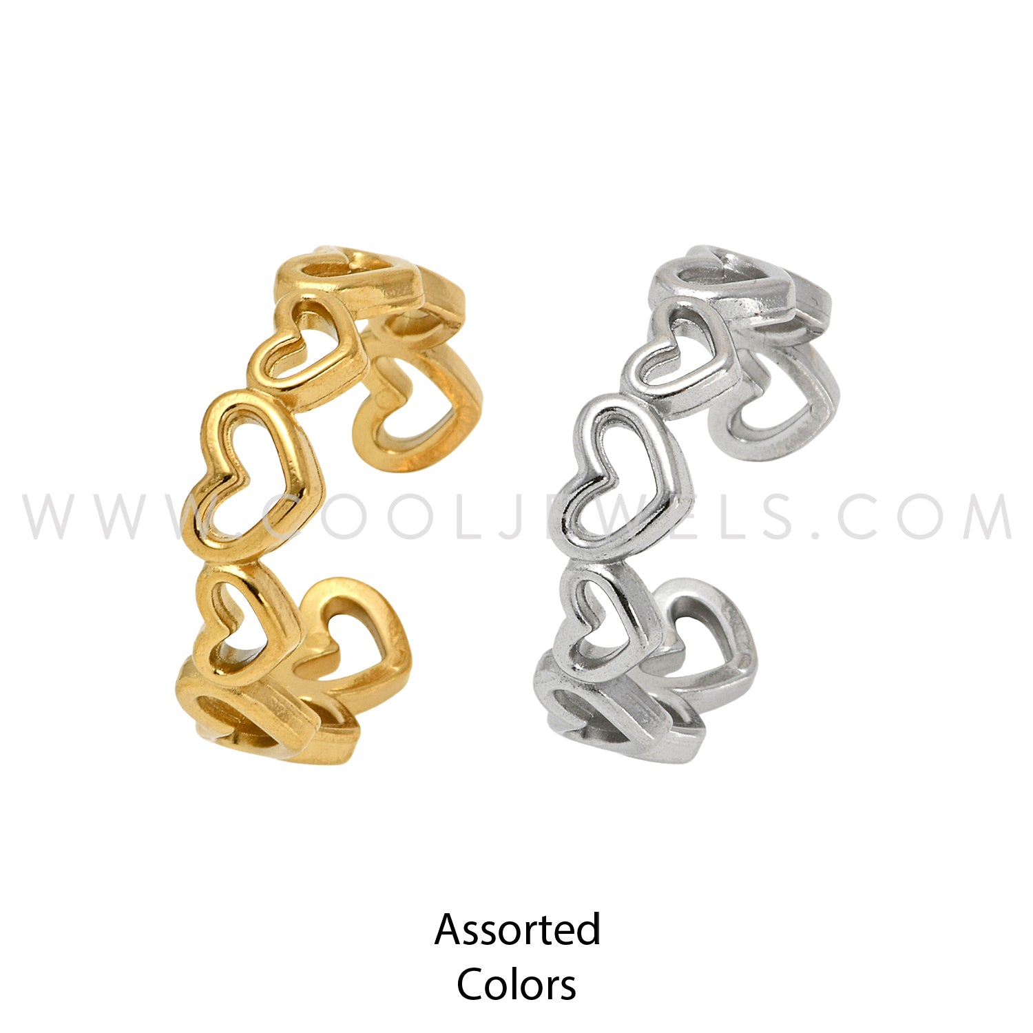 ADJUSTABLE STAINLESS STEEL TOE RING WITH HEARTS