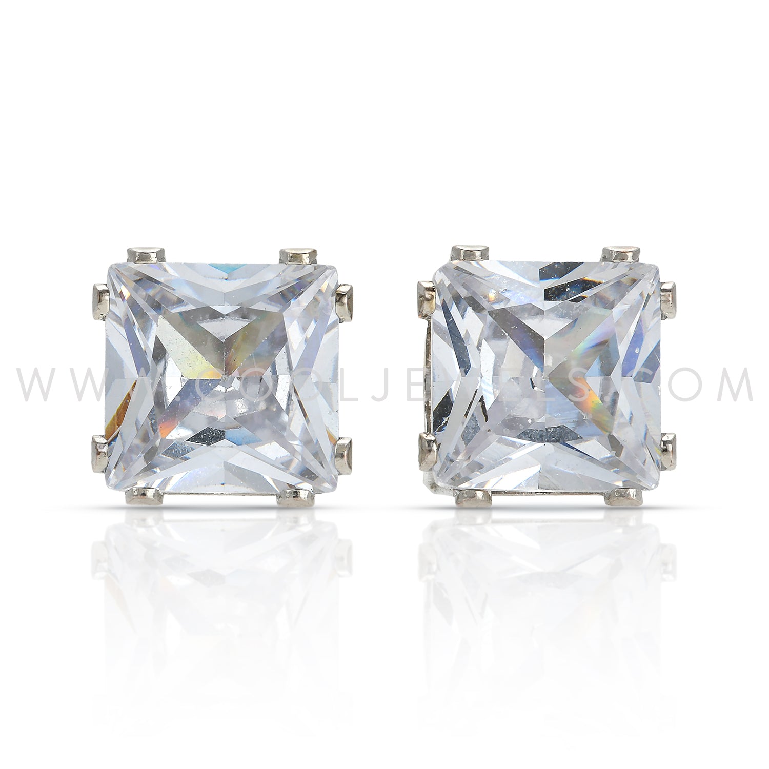 This set of Square Clear Rhinestone Earrings features princess cut diamond replicas on silver posts.
