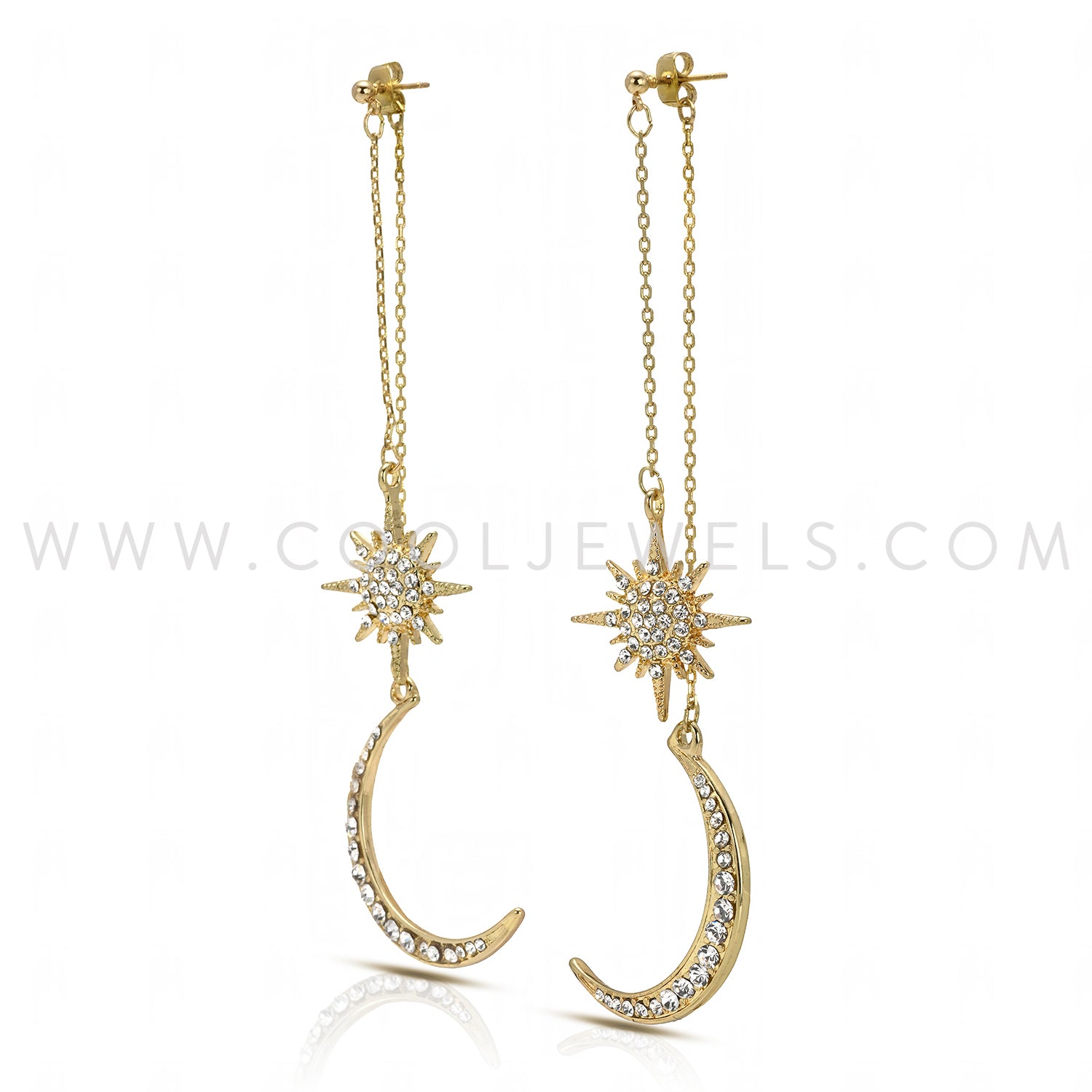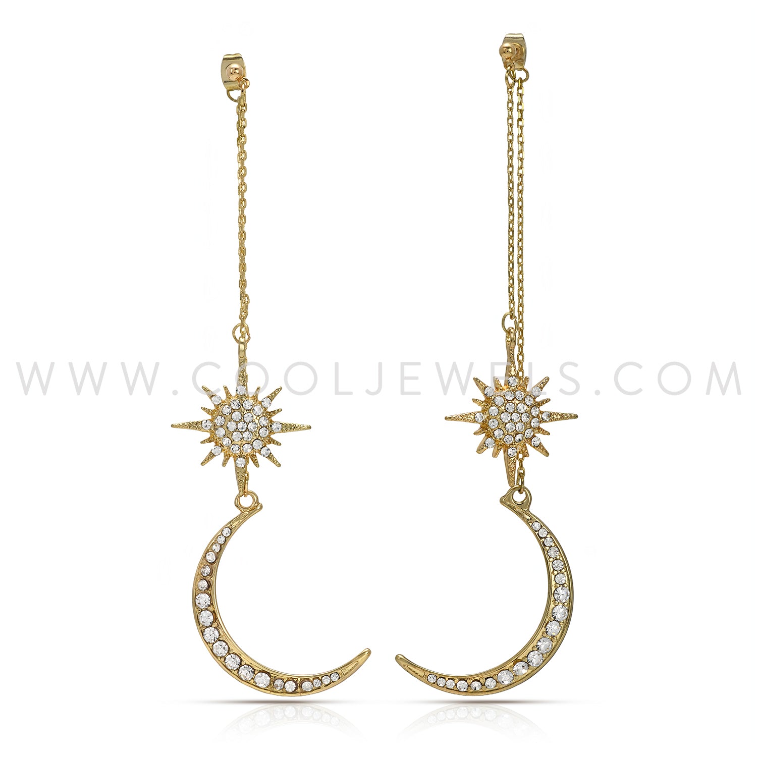GOLD POST EARRINGS WITH RHINESTONE MOON & STAR