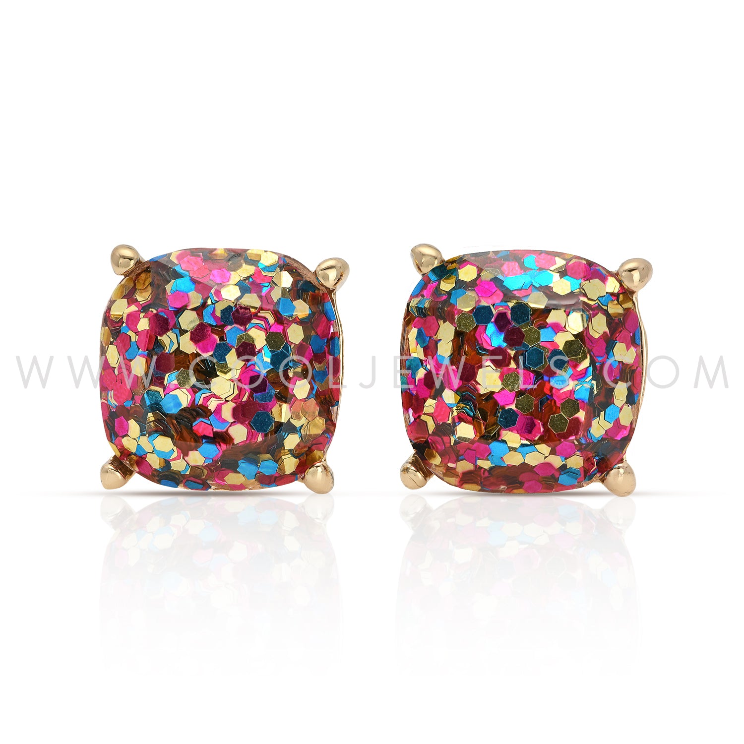 Gold Rhinestone & Glitter Post Earrings