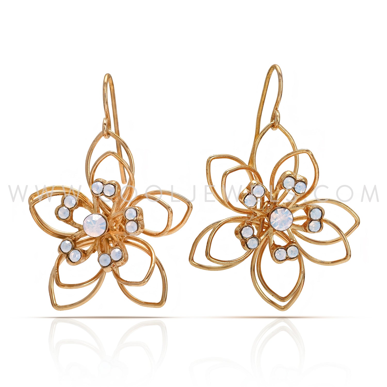 GOLD FISH HOOK EARRING WITH METAL FLOWER