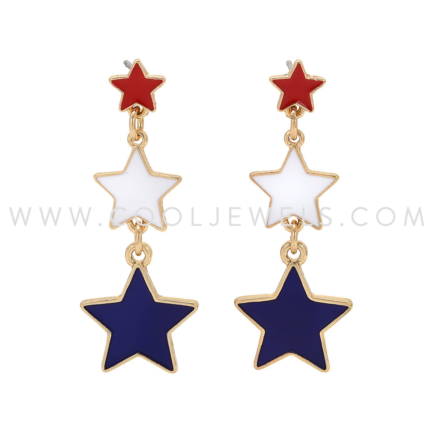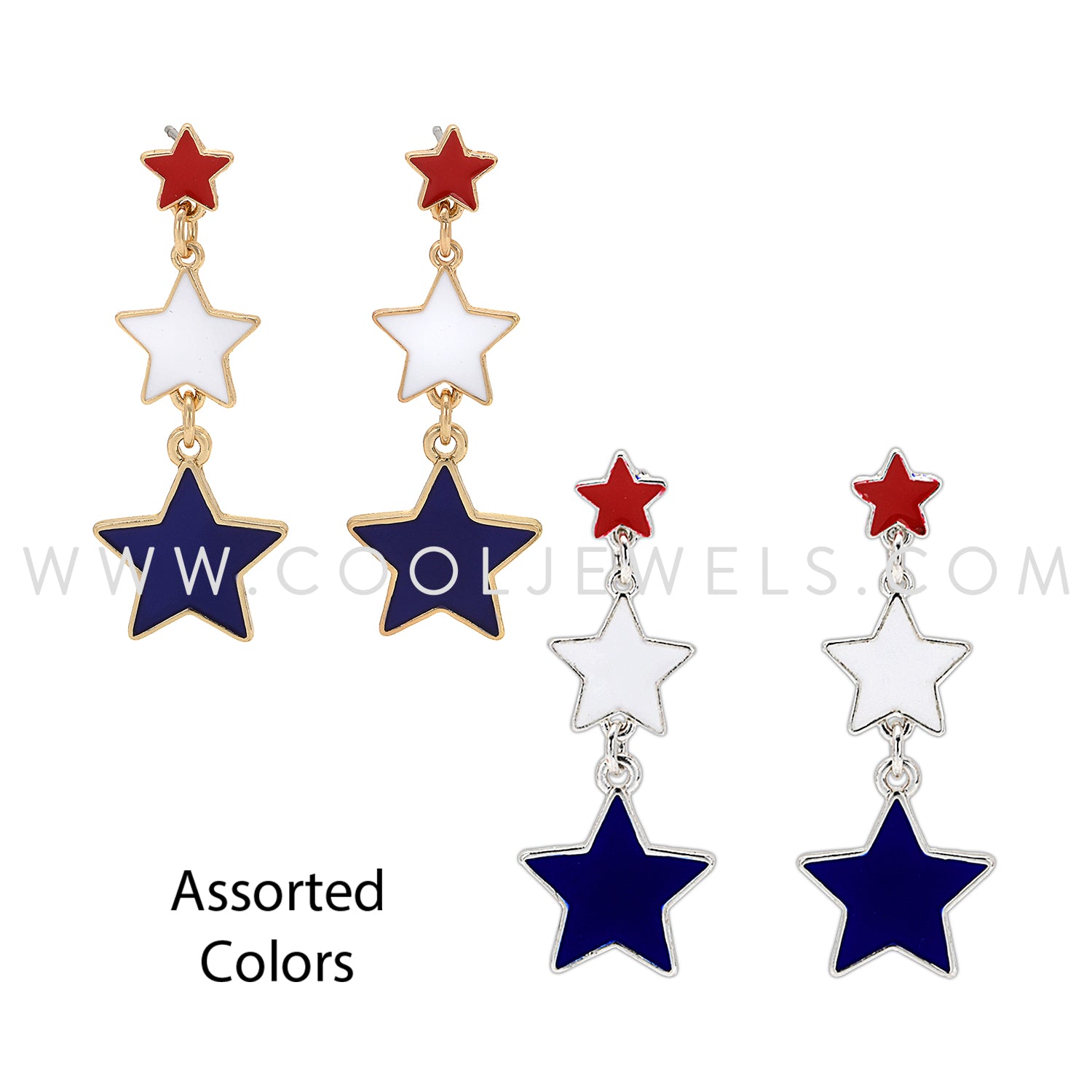 POST EARRINGS WITH AMERICANA DANGLING STARS - ASSORTED