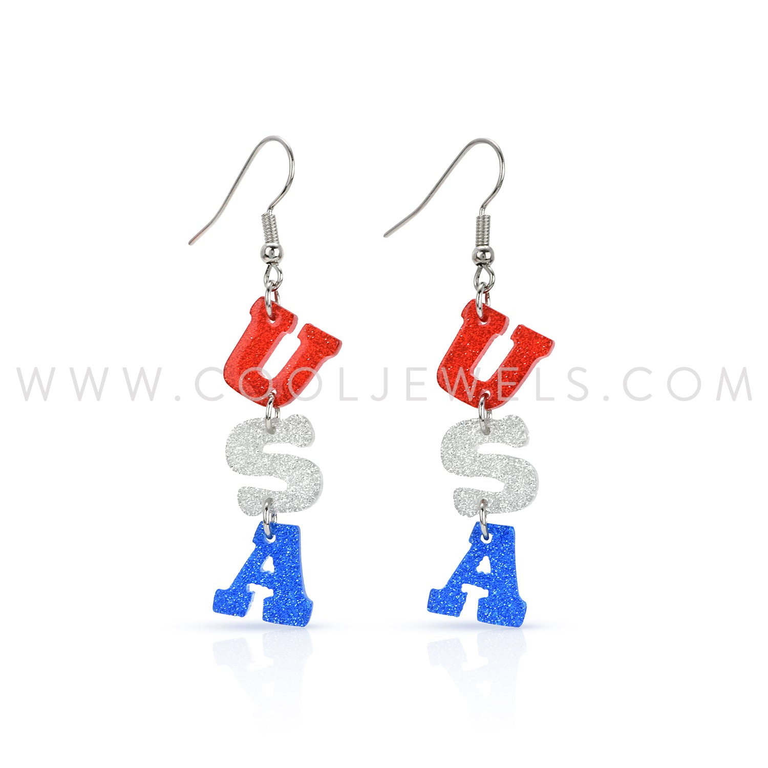 FISH HOOK EARRINGS WITH AMERICANA "U-S-A" PENDANTS