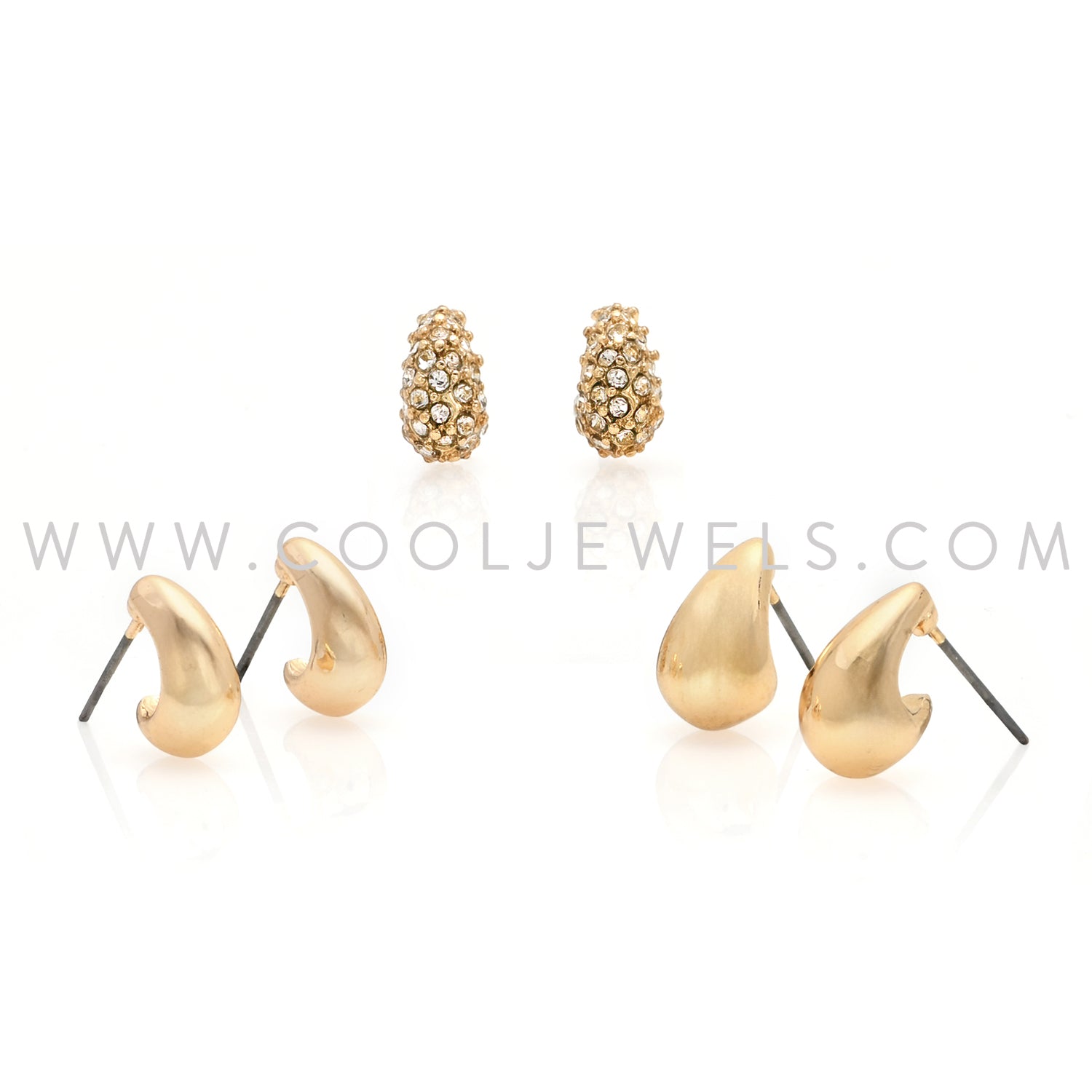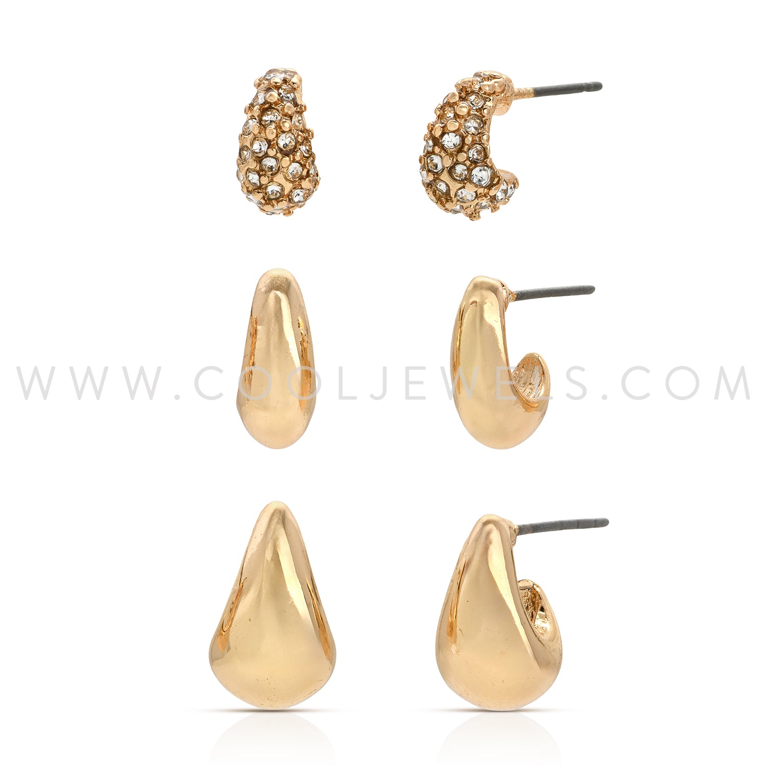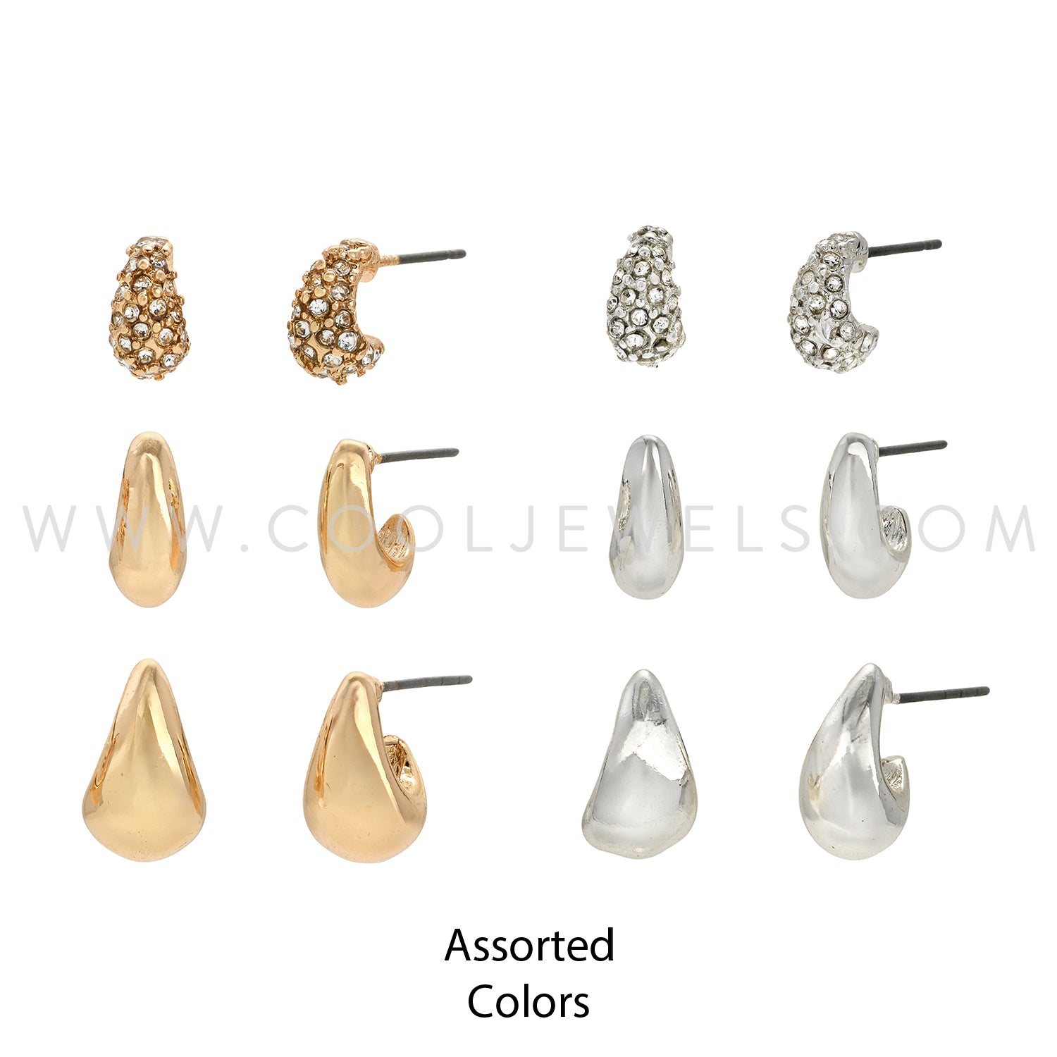 (SET OF 3) POST TEARDROP EARRINGS - ASSORTED