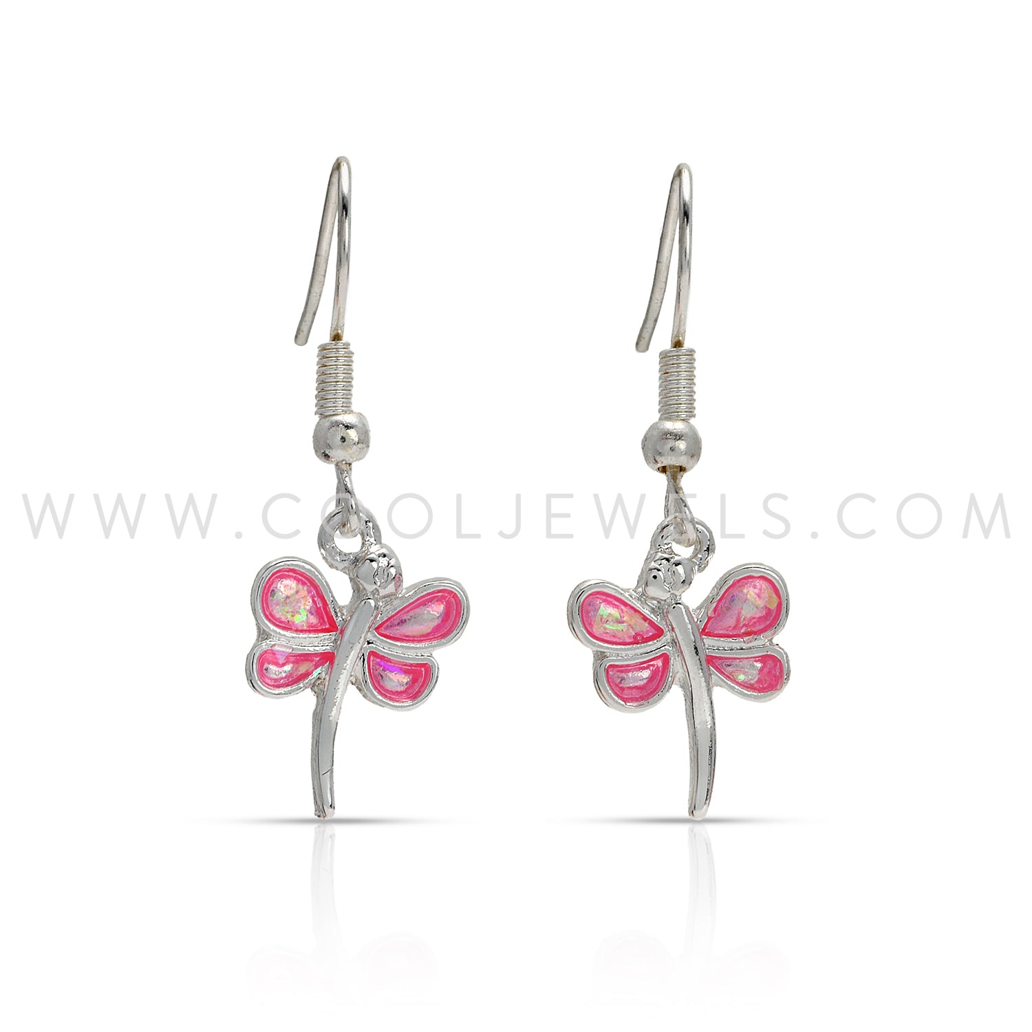 SILVER FISH HOOK EARRING WITH DRAGONFLY