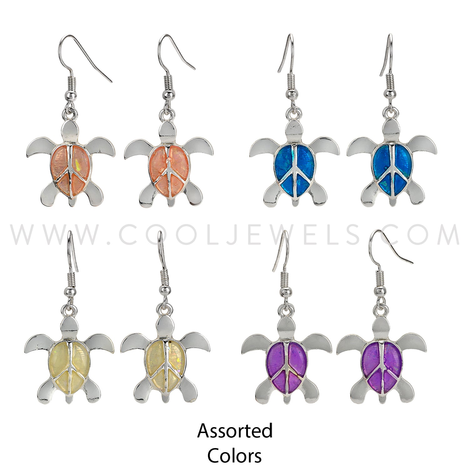 Each dozen of these Turtle Earrings comes in an assortment of pink, clear, purple, and blue earrings.