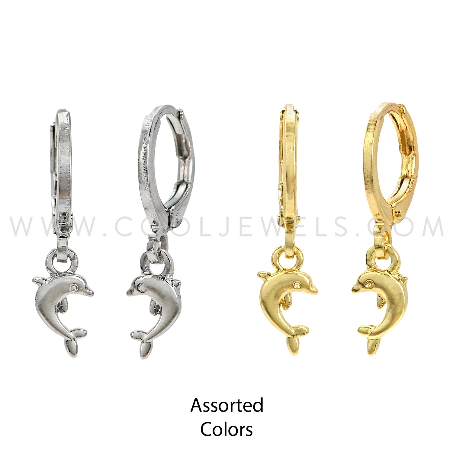 HUGGIE HOOP EARRING WITH DOLPHIN PENDANTS - ASSORTED