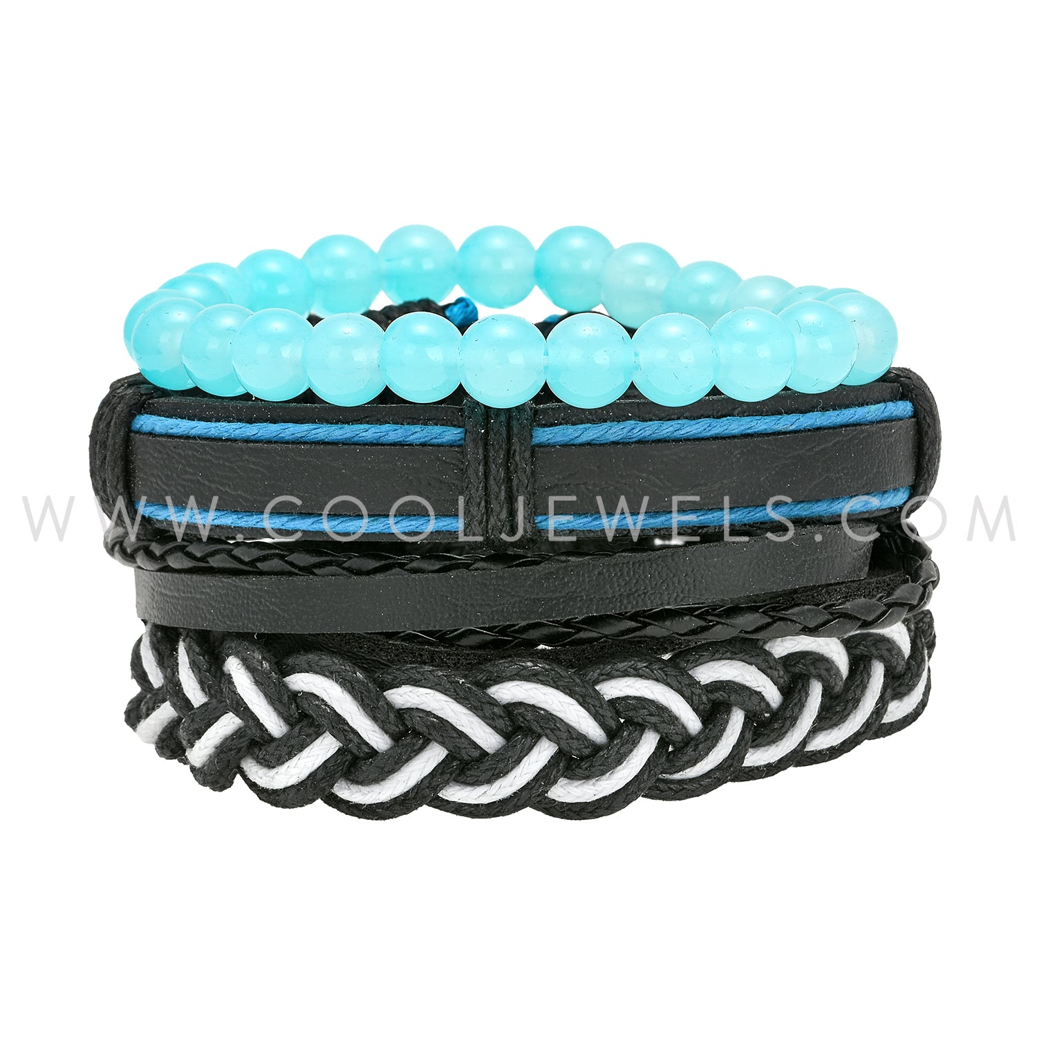 (SET OF FOUR) MIXED MATERIAL BRACELETS