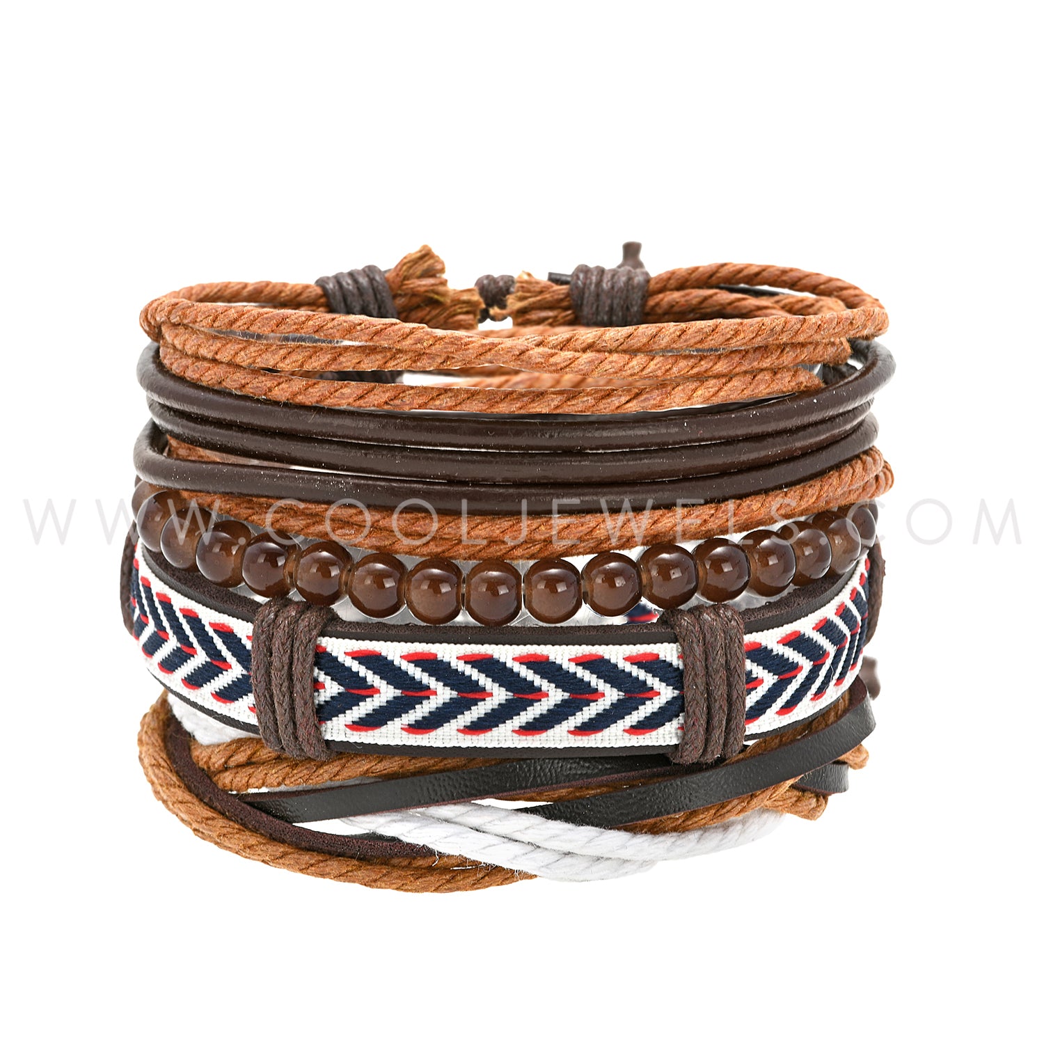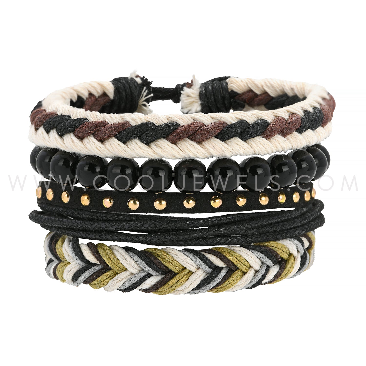 (SET OF FOUR) MIXED MATERIAL BRACELETS