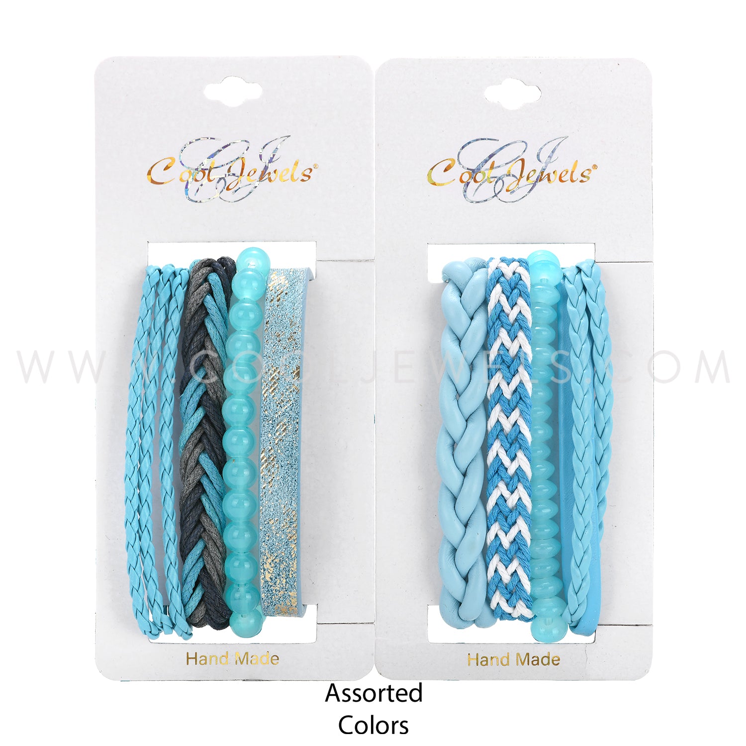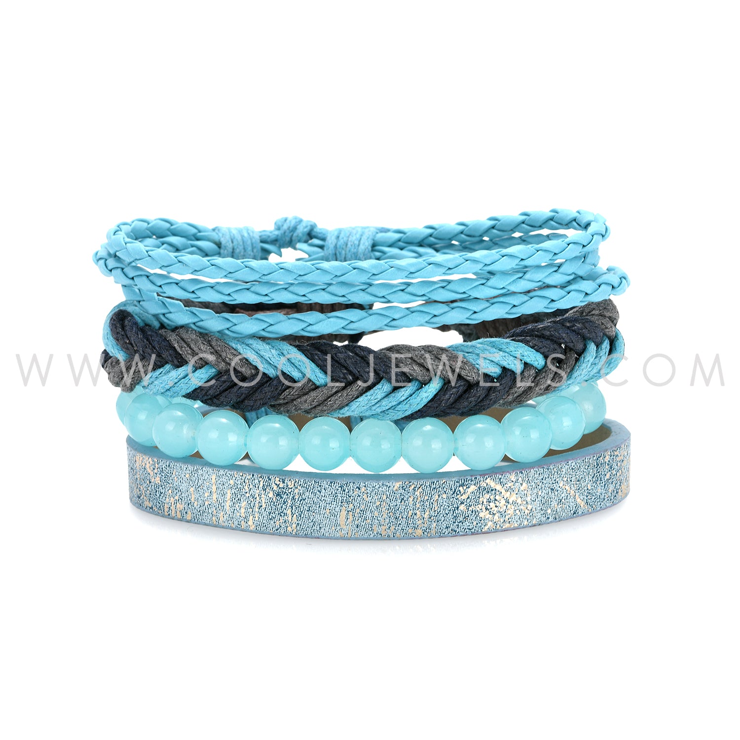 (SET OF 4) MIXED MATERIAL BRACELETS (WOVEN, LEATHER, BEADED)
