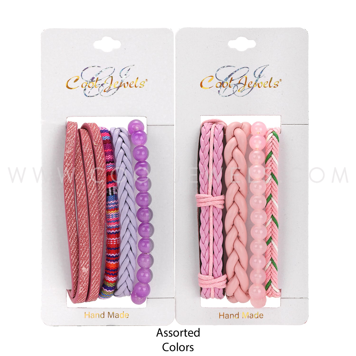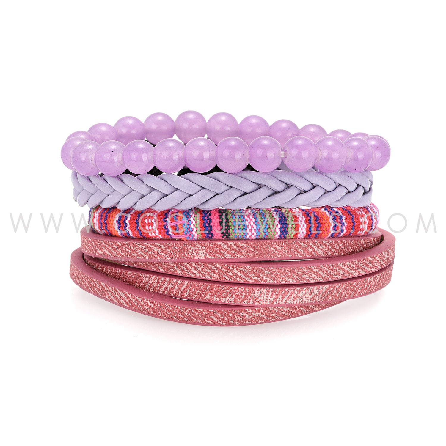 (SET OF 4) MIXED MATERIAL BRACELETS (WOVEN, LEATHER, BEADED)