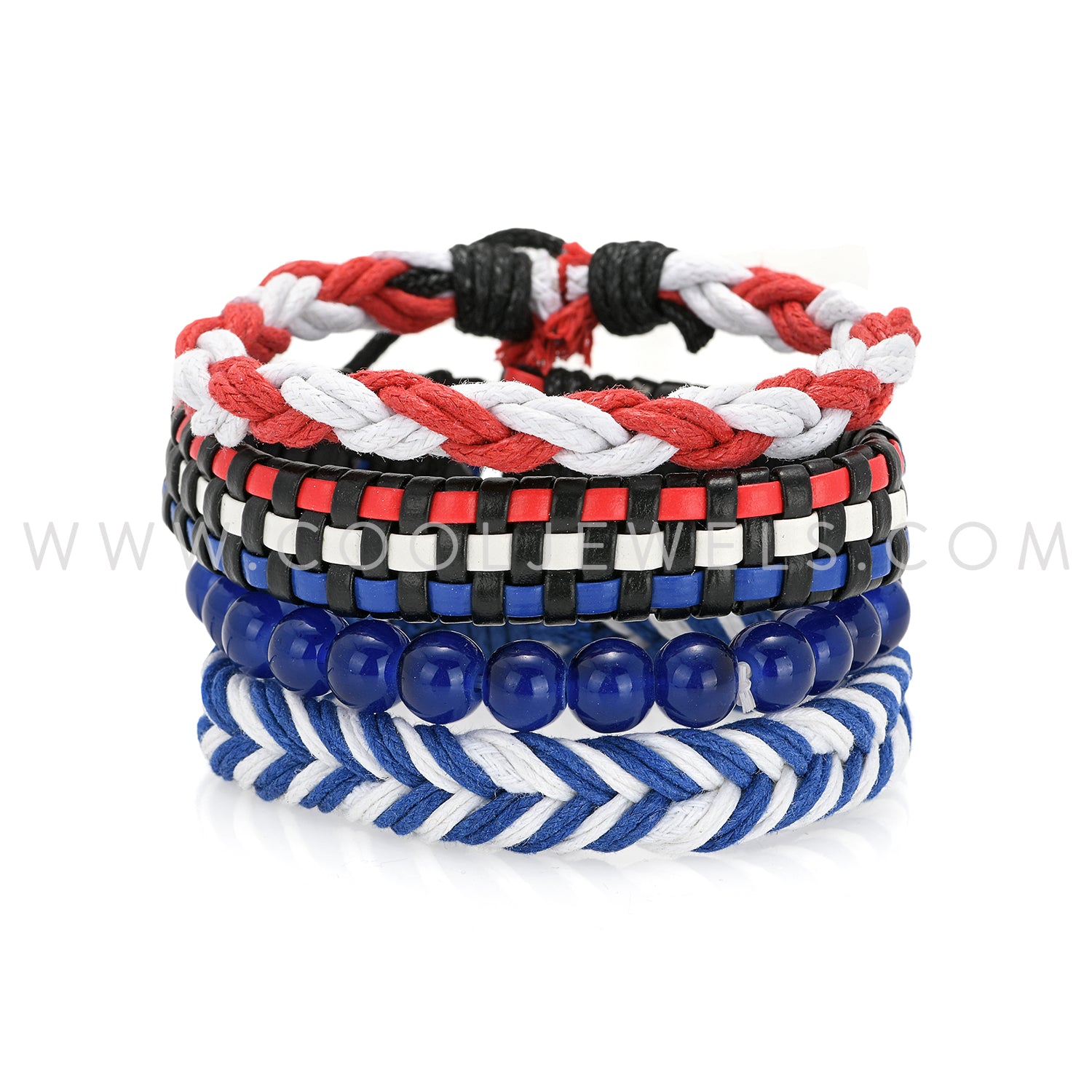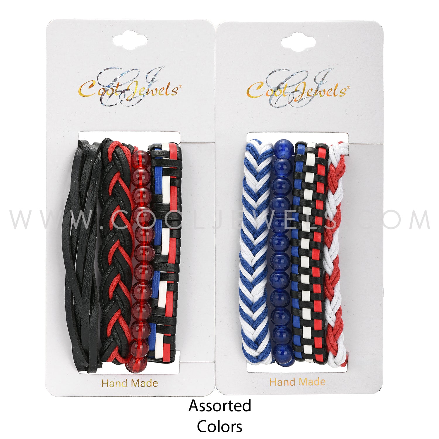 (SET OF 4) MIXED MATERIAL BRACELETS (WOVEN, LEATHER, BEADED)