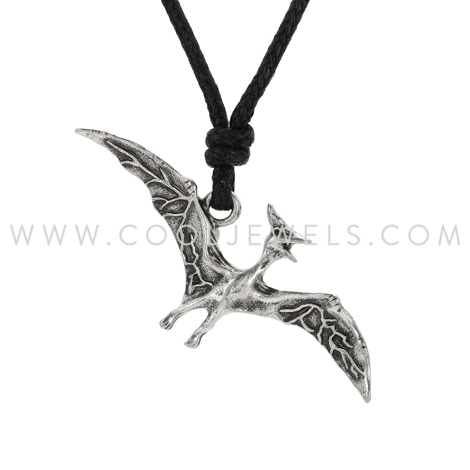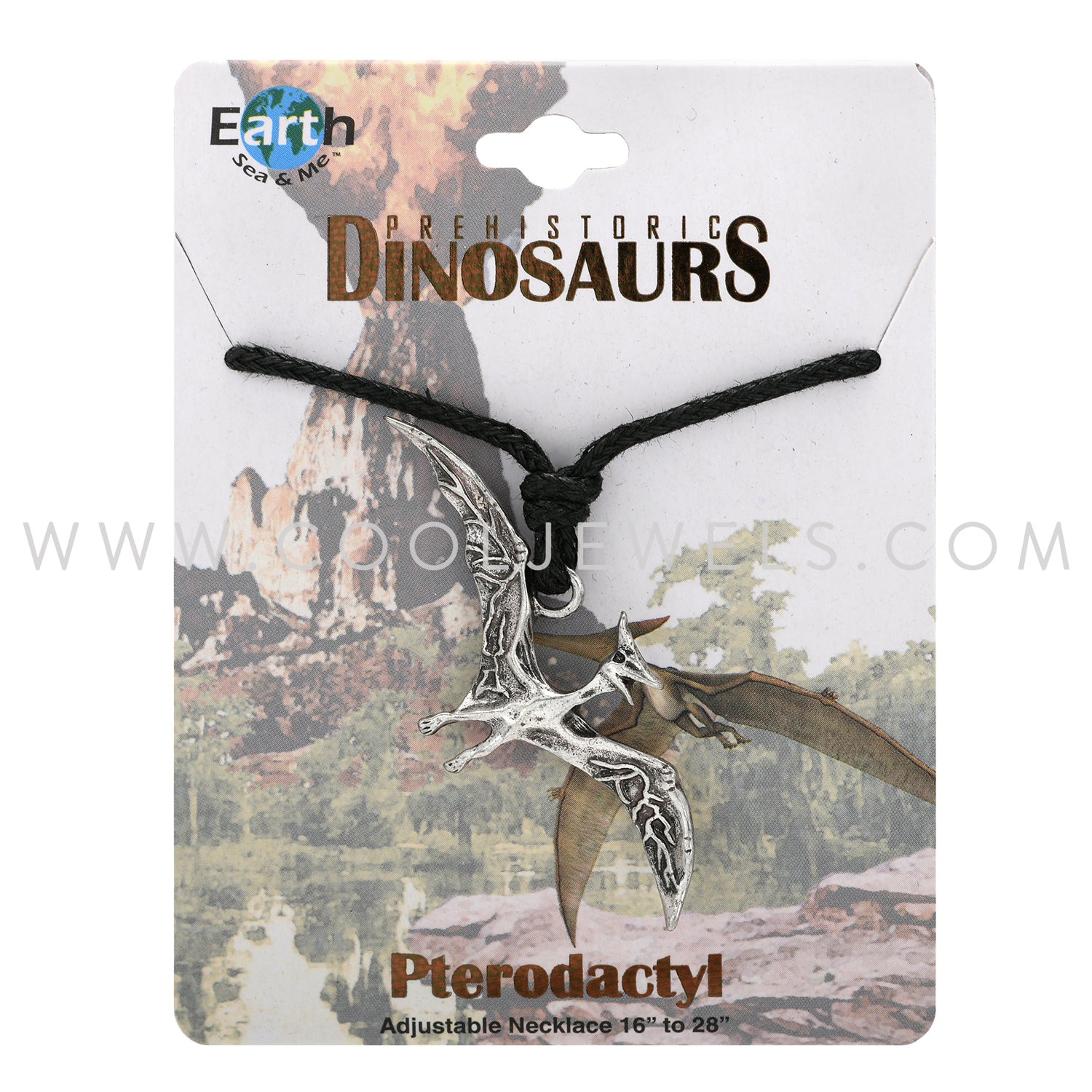 These awesome Prehistoric Dinosaurs Pterodactyl Slider Cord Necklace features an antiqued pewter pterodactyl on a black slider cord for easy sizing.Each Prehistoric Dinosaur comes on premium kraft packaging with fascinating dino facts on the back!