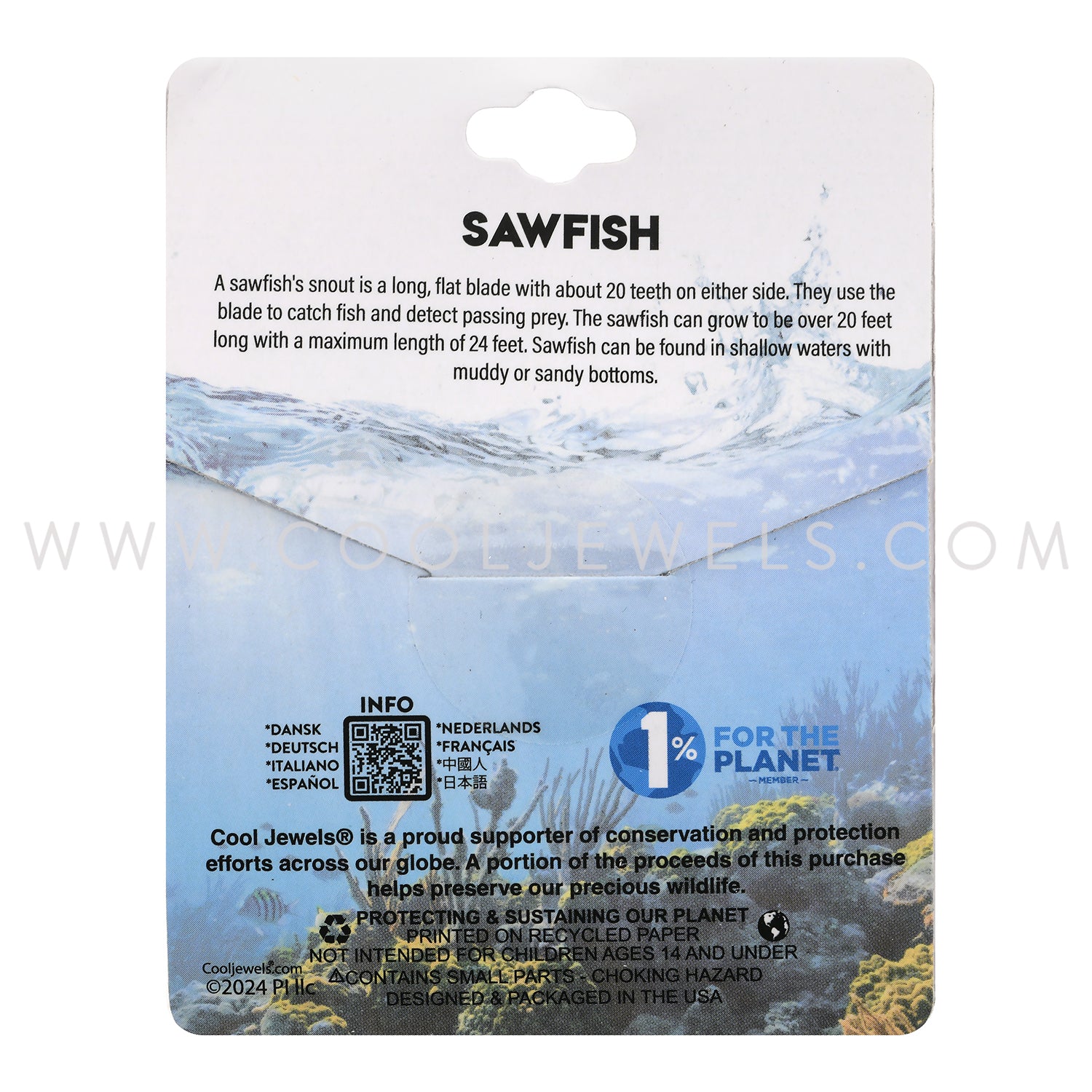 These awesome Earth, Sea & Me Sawfish Slider Cord Necklace features an antiqued pewter casting of a sawfish on a black slider cord for ultimate sizing convenience.Comes on Earth, Sea & Me premium packaging with interesting animal facts on the back.