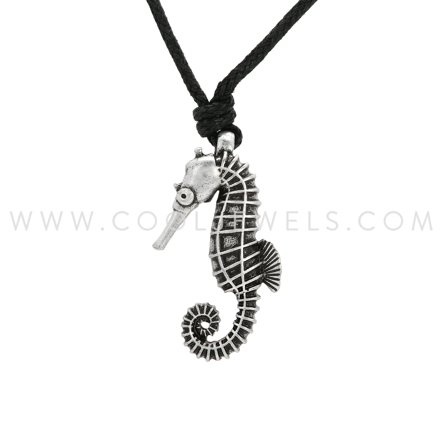 These awesome Earth, Sea & Me Spotted Seahorse Slider Cord Necklace features an antiqued pewter casting of a spotted seahorse on a black slider cord for ultimate sizing convenience.Comes on Earth, Sea & Me premium packaging with interesting animal facts on the back.