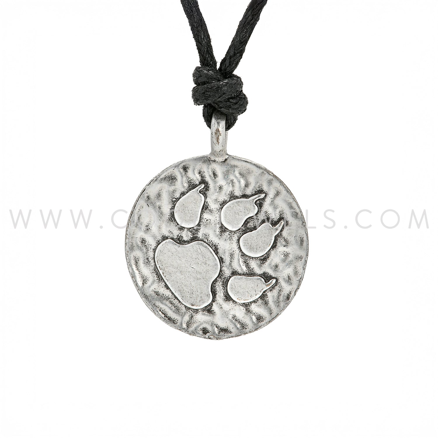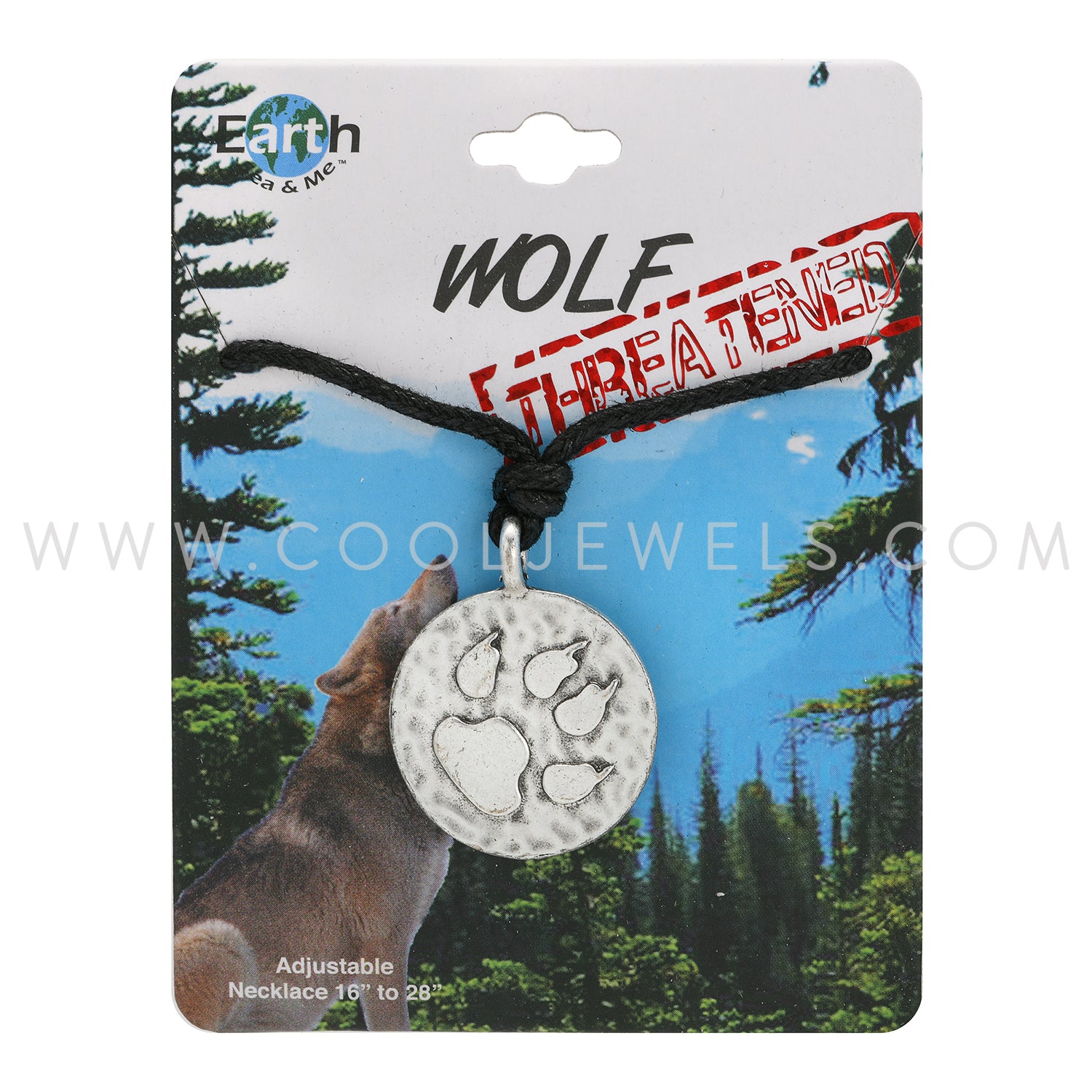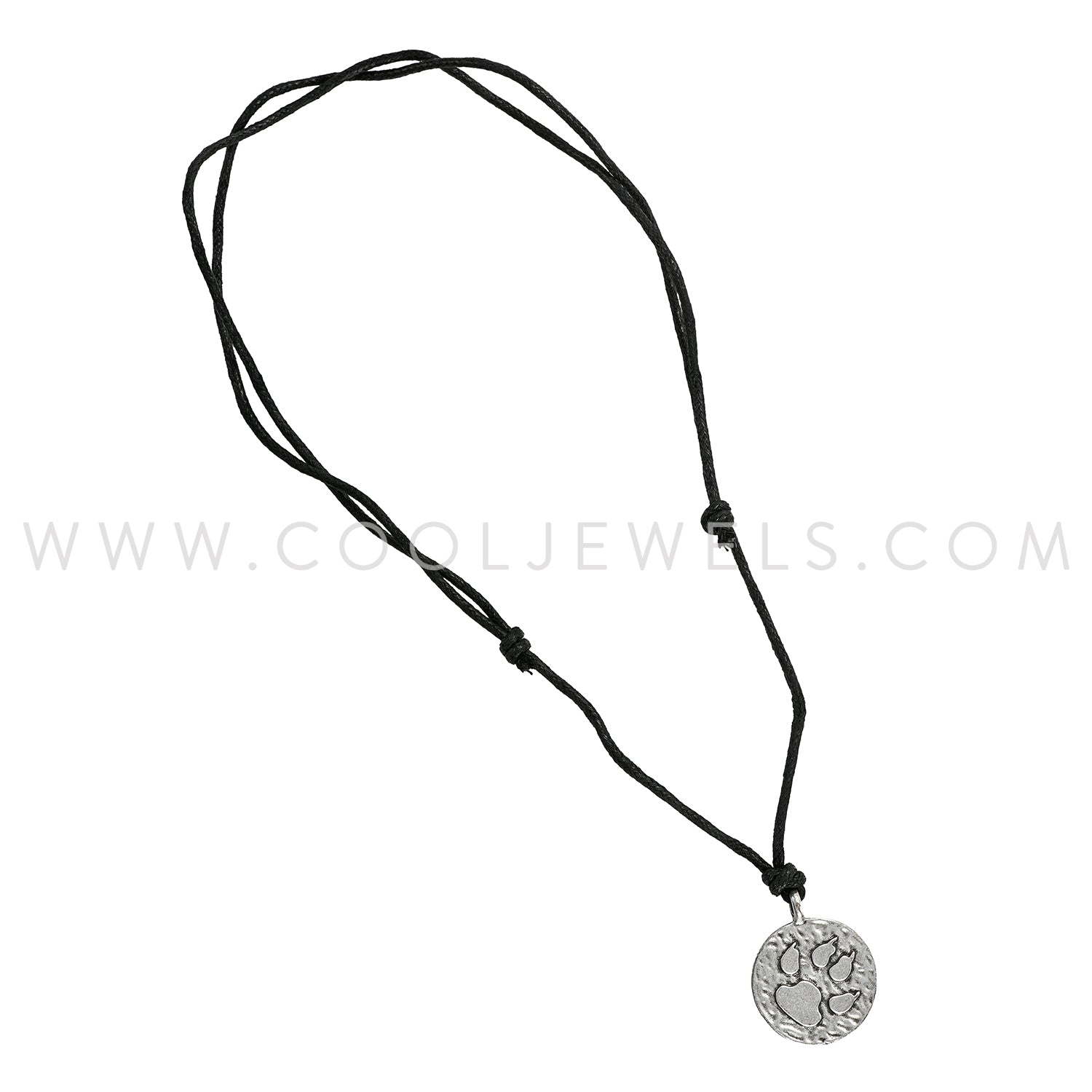 These awesome Paws, Horns & Claws Wolf Slider Cord Necklace features a two sided hammered pewter medallion, one side with a wolf's paw print, and the backside with the wolf's inspirational words - Self-control & Power.
