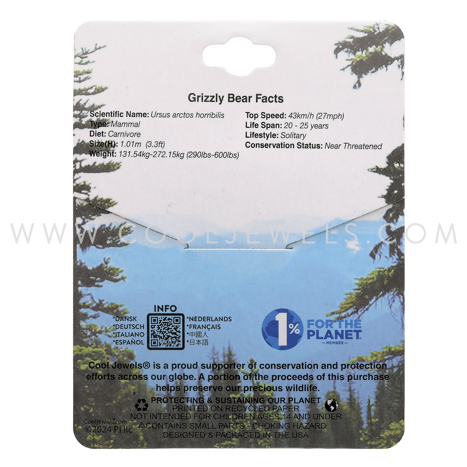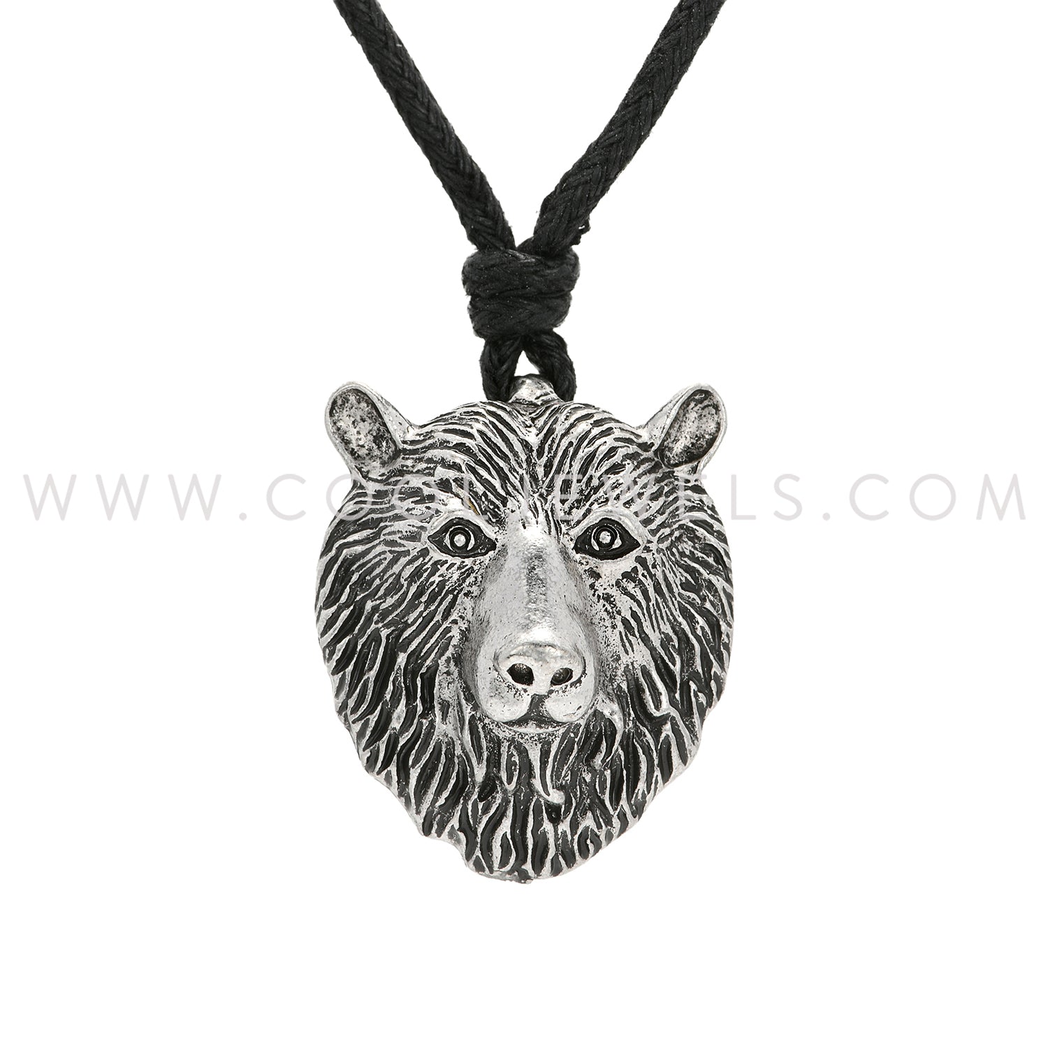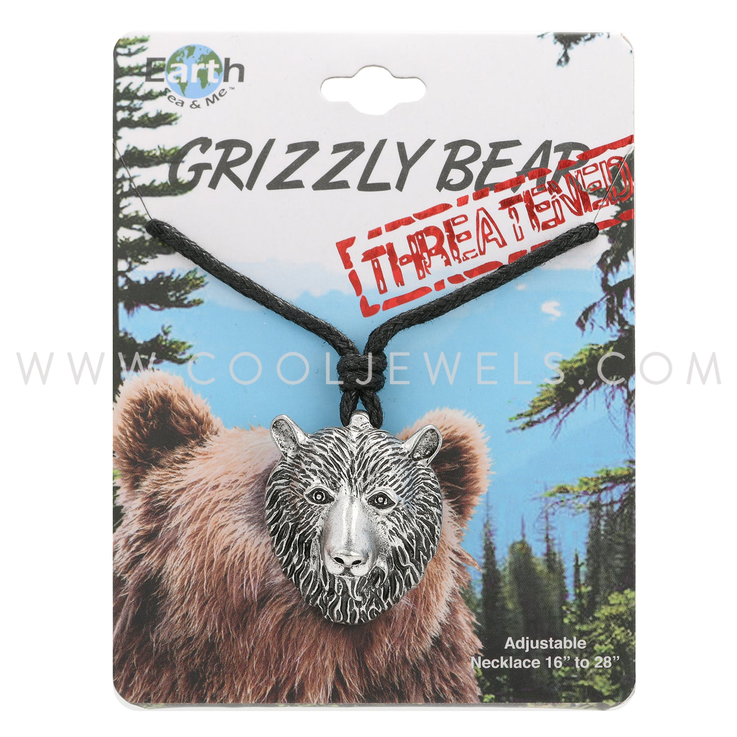 These awesome Earth, Sea & Me Grizzly Bear Necklace features a antiqued pewter grizzly bear head on a black slider cord necklace.