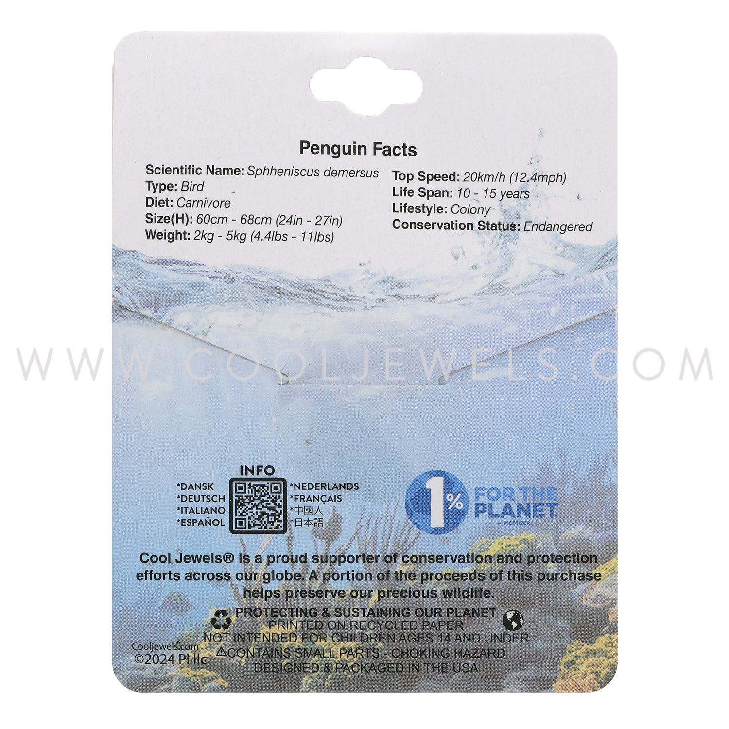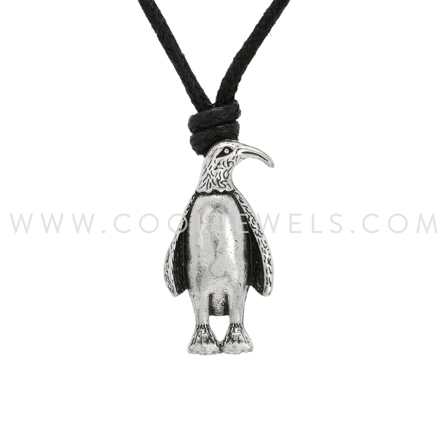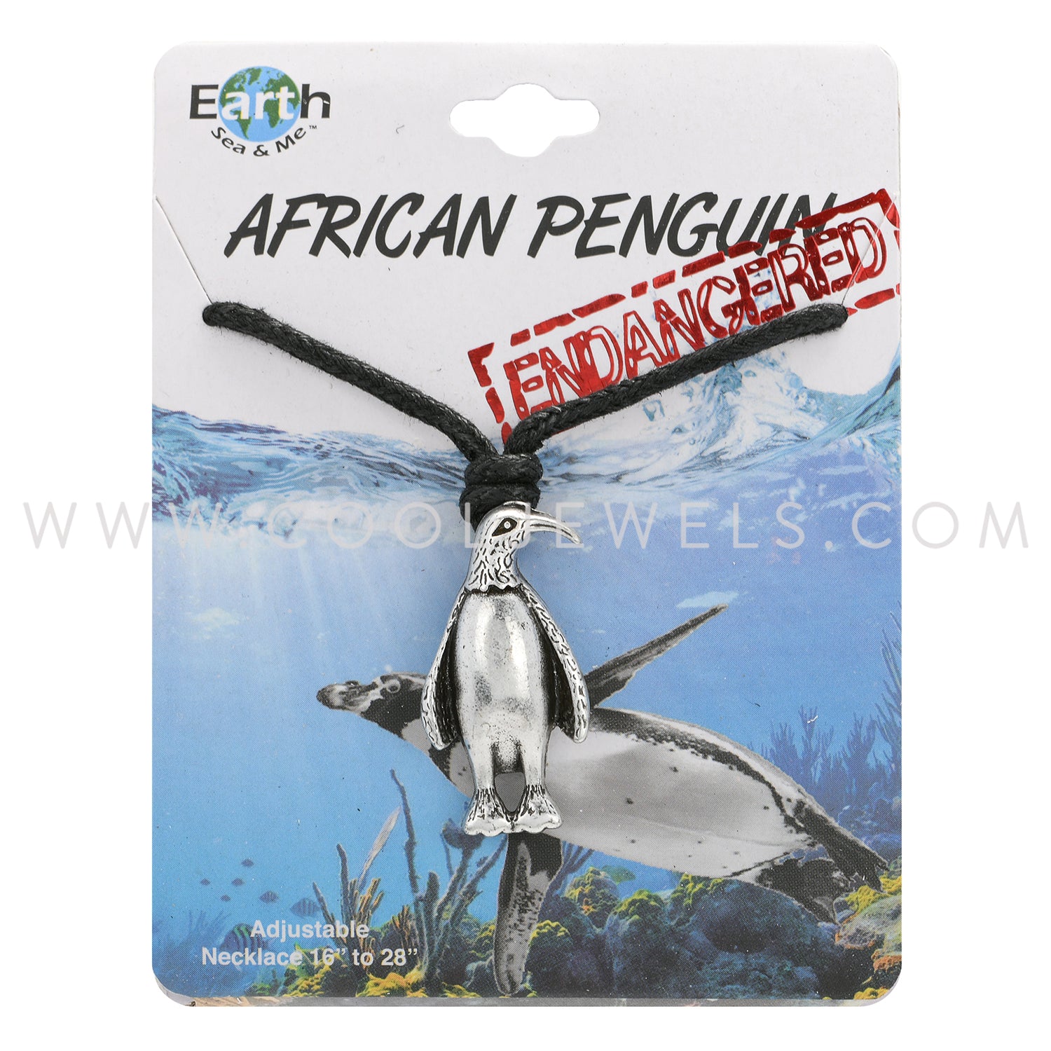 These awesome Earth, Sea & Me African Penguin Necklace features an antiqued pewter African Penguin on a black slider cord necklace.