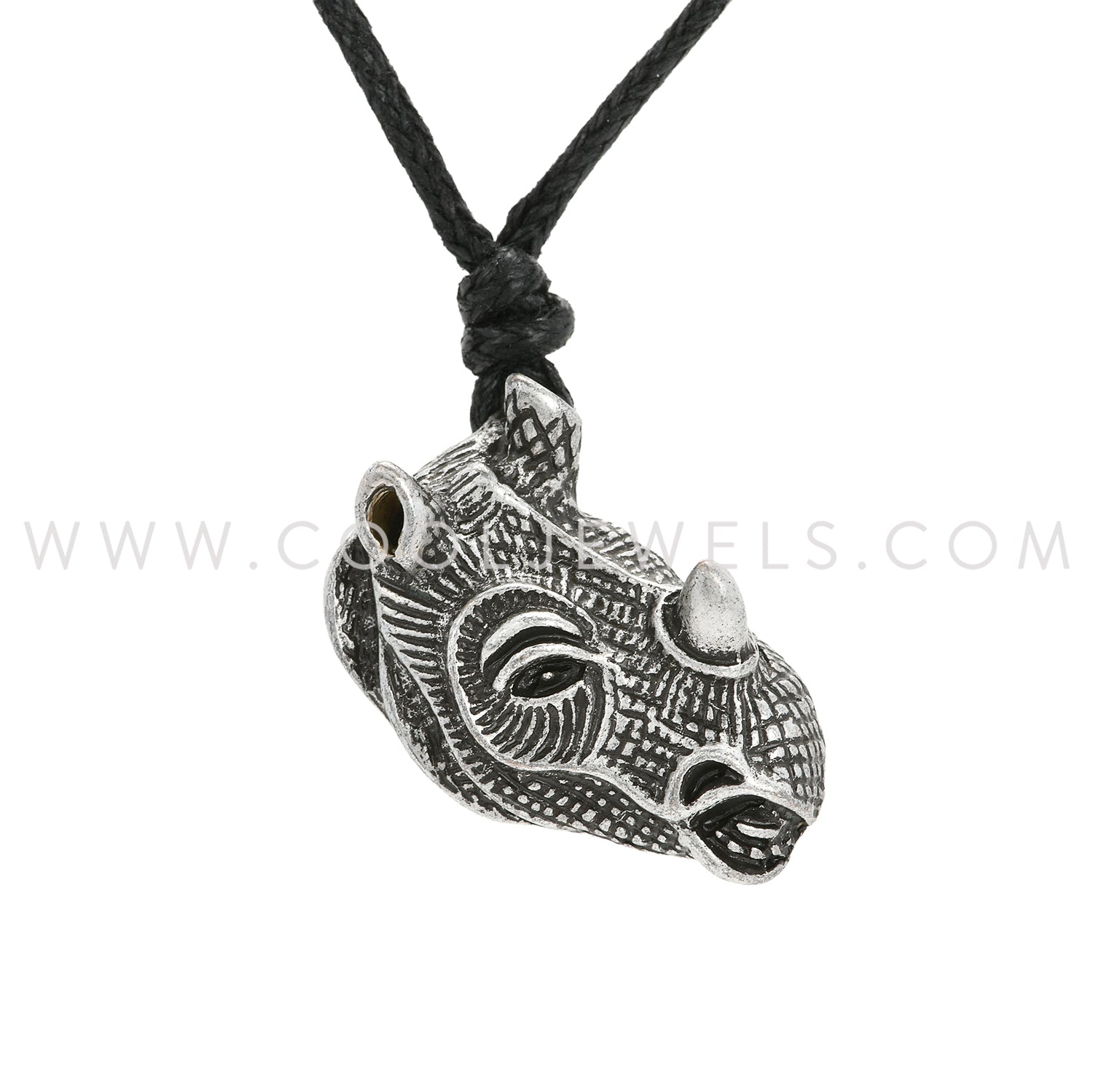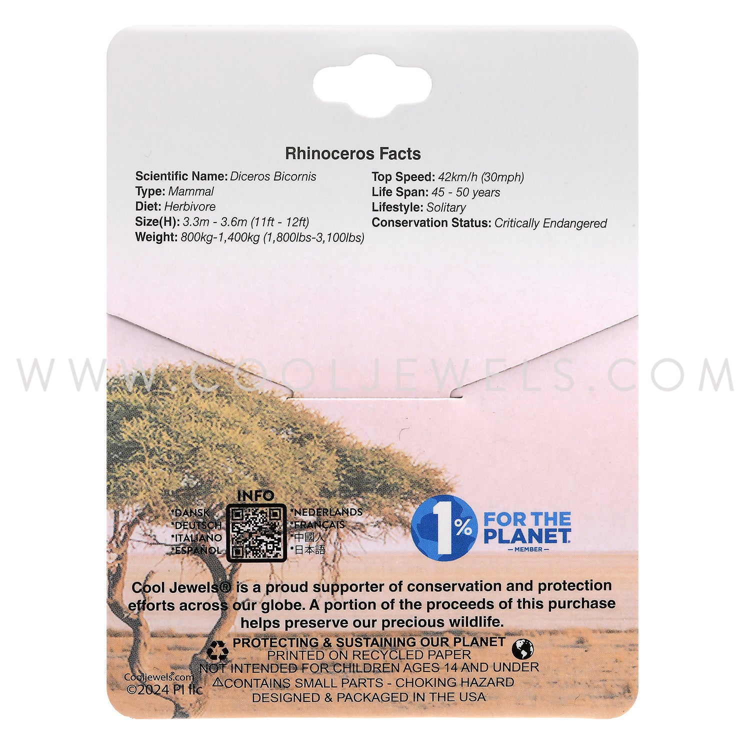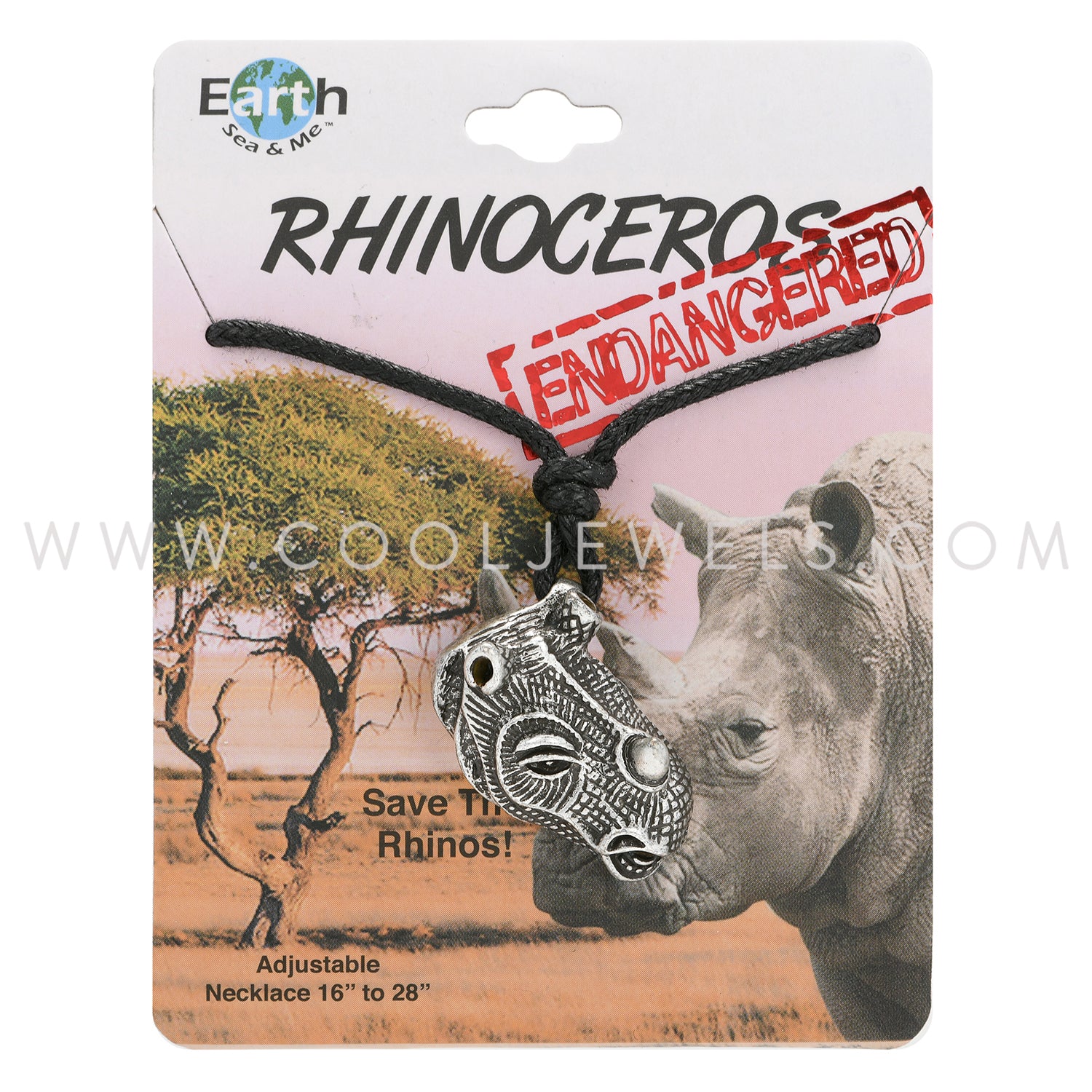 These awesome Earth, Sea & Me Black Rhinoceros Necklace features an antiqued pewter black rhinoceros head on a black slider cord necklace.