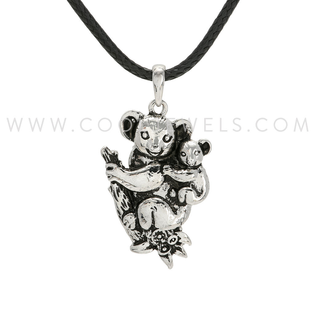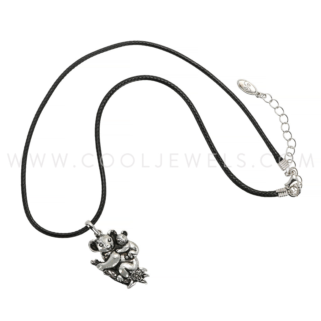 BLACK CORD NECKLACE WITH SILVER KOALA AND BABY PENDANT