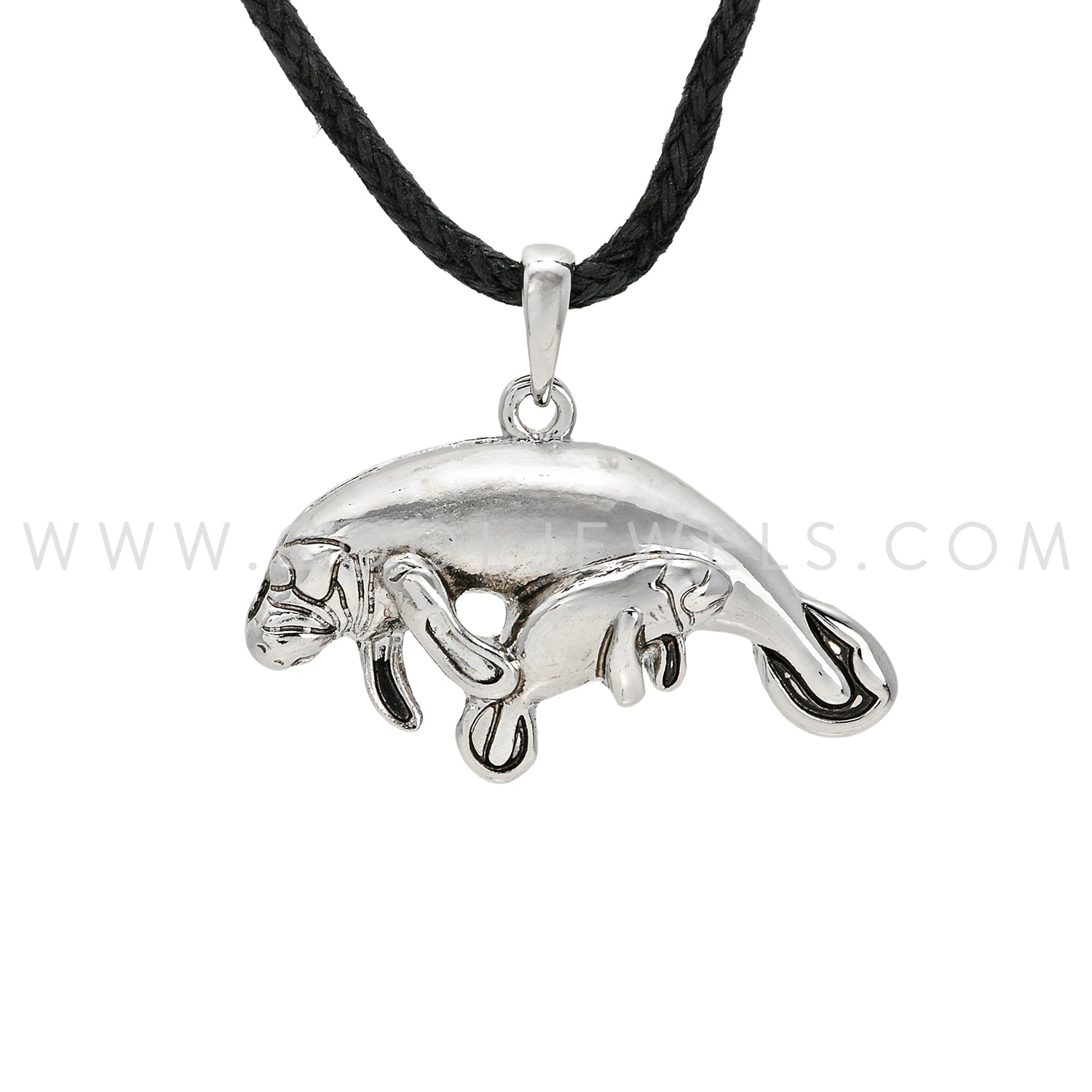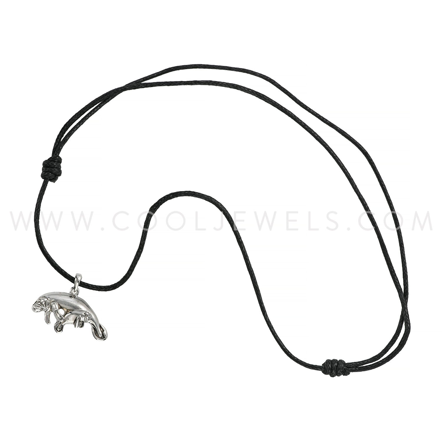 BLACK SLIDER CORD NECKLACE WITH MANATEE PENDANT