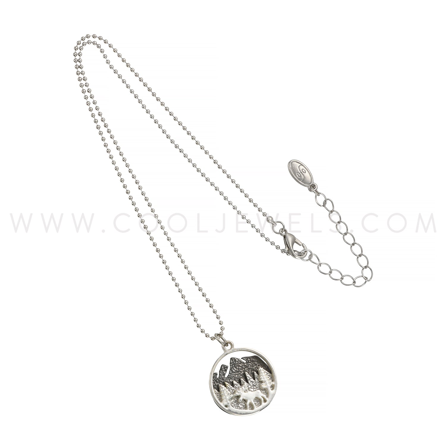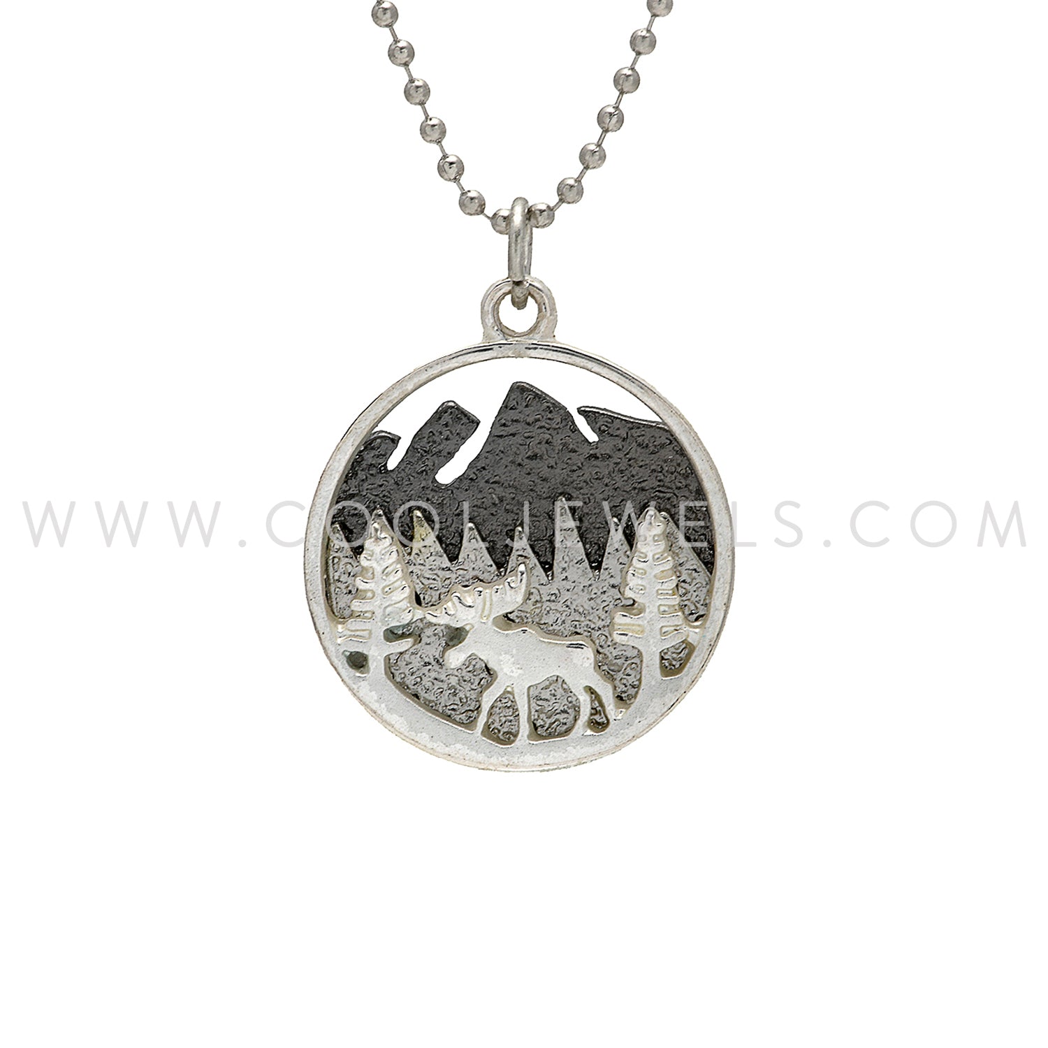 BALL CHAIN NECKLACE WITH ROUND MOOSE & FOREST PENDANT