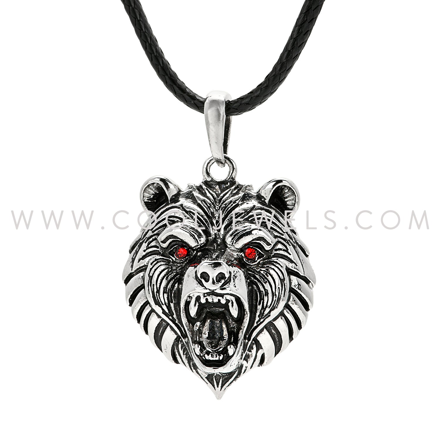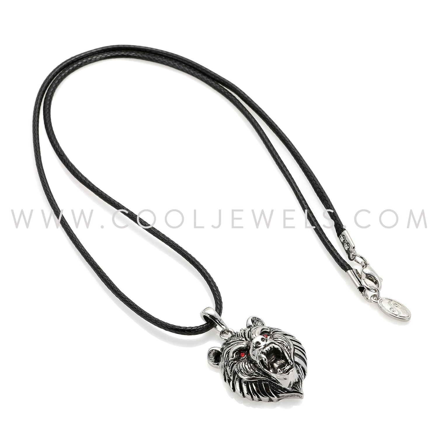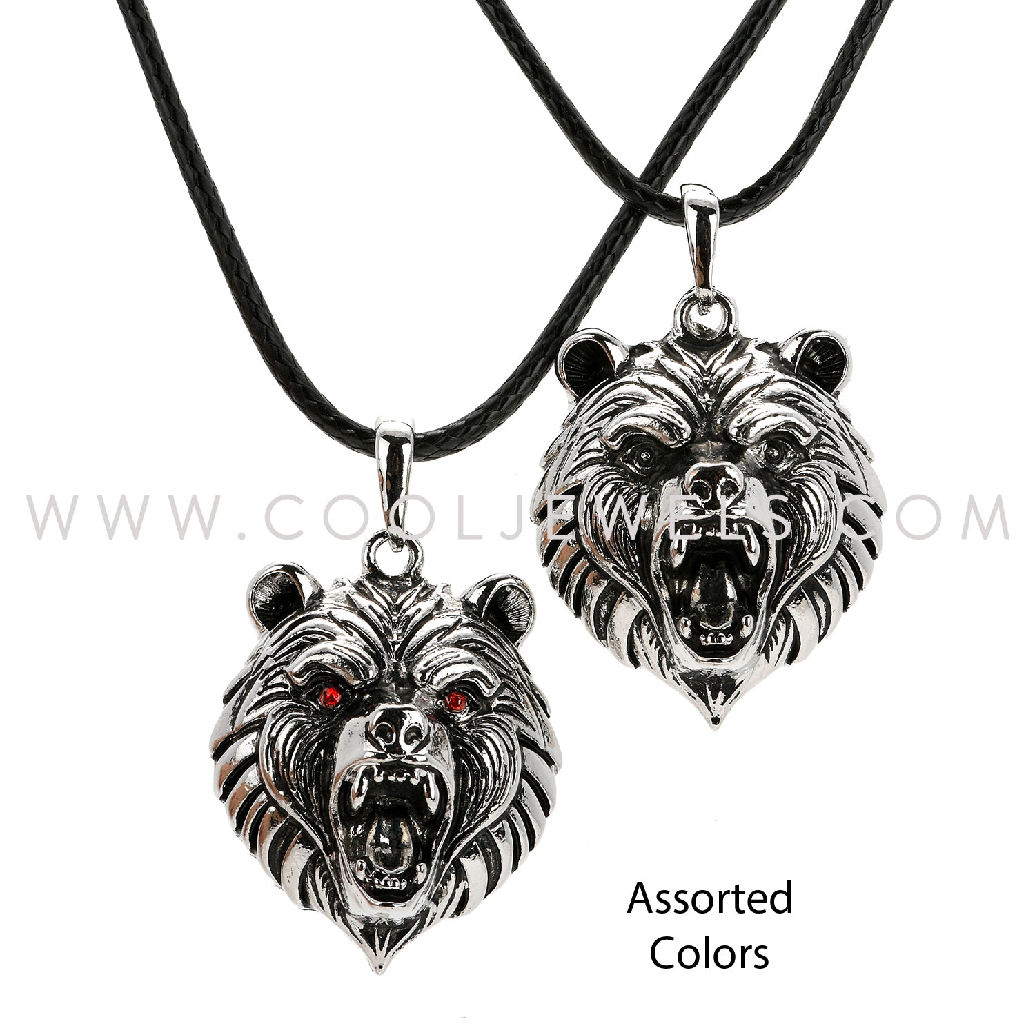 BLACK CORD NECKLACE WITH BEAR HEAD PENDANT - ASSORTED
