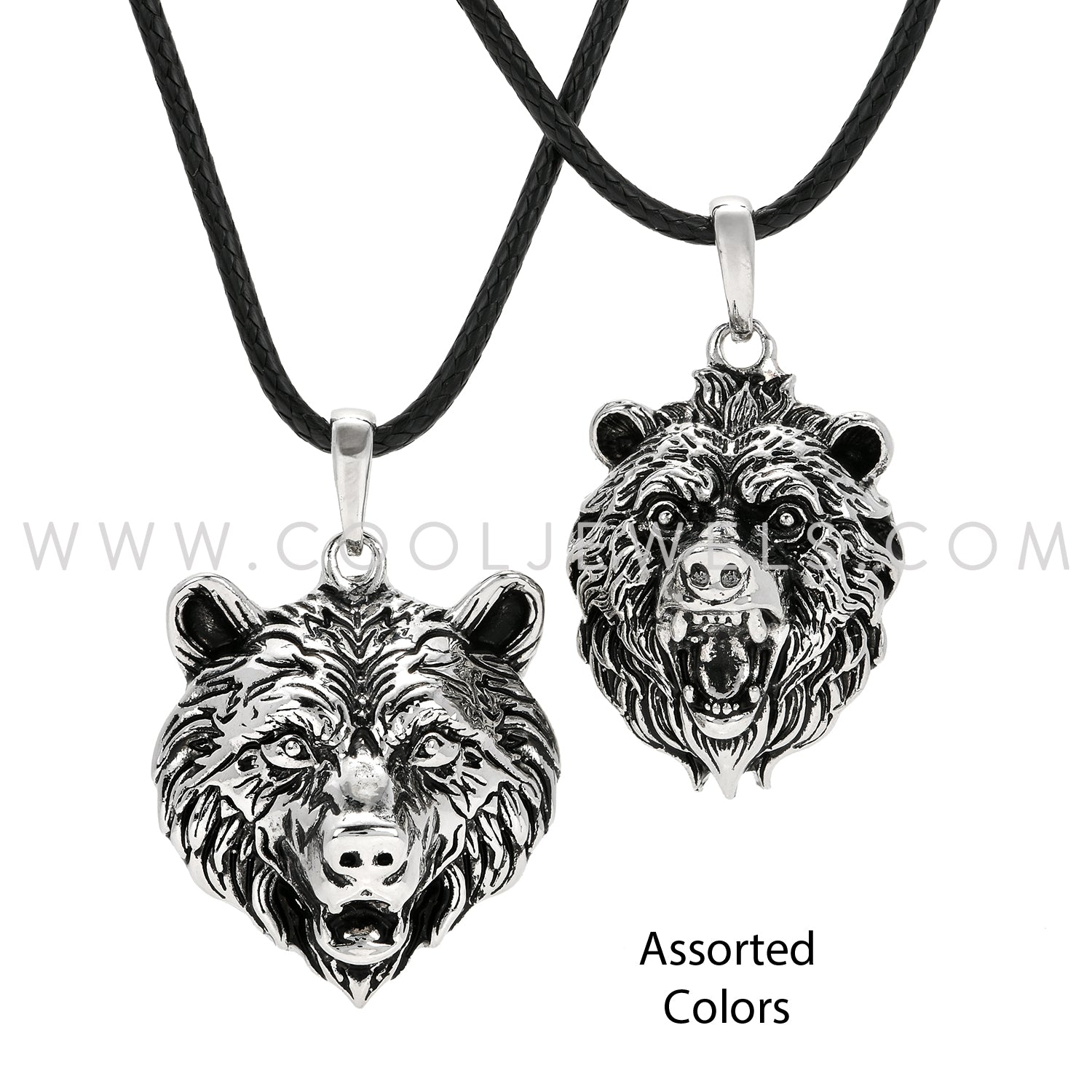 BLACK CORD NECKLACE WITH BEAR HEAD PENDANT - ASSORTED