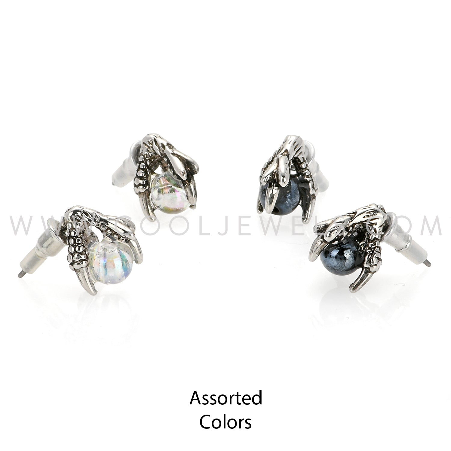 CLAW POST EARRINGS WITH CRYSTAL BALL - ASSORTED