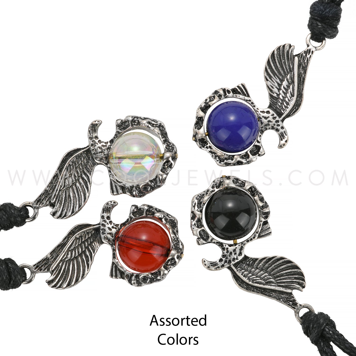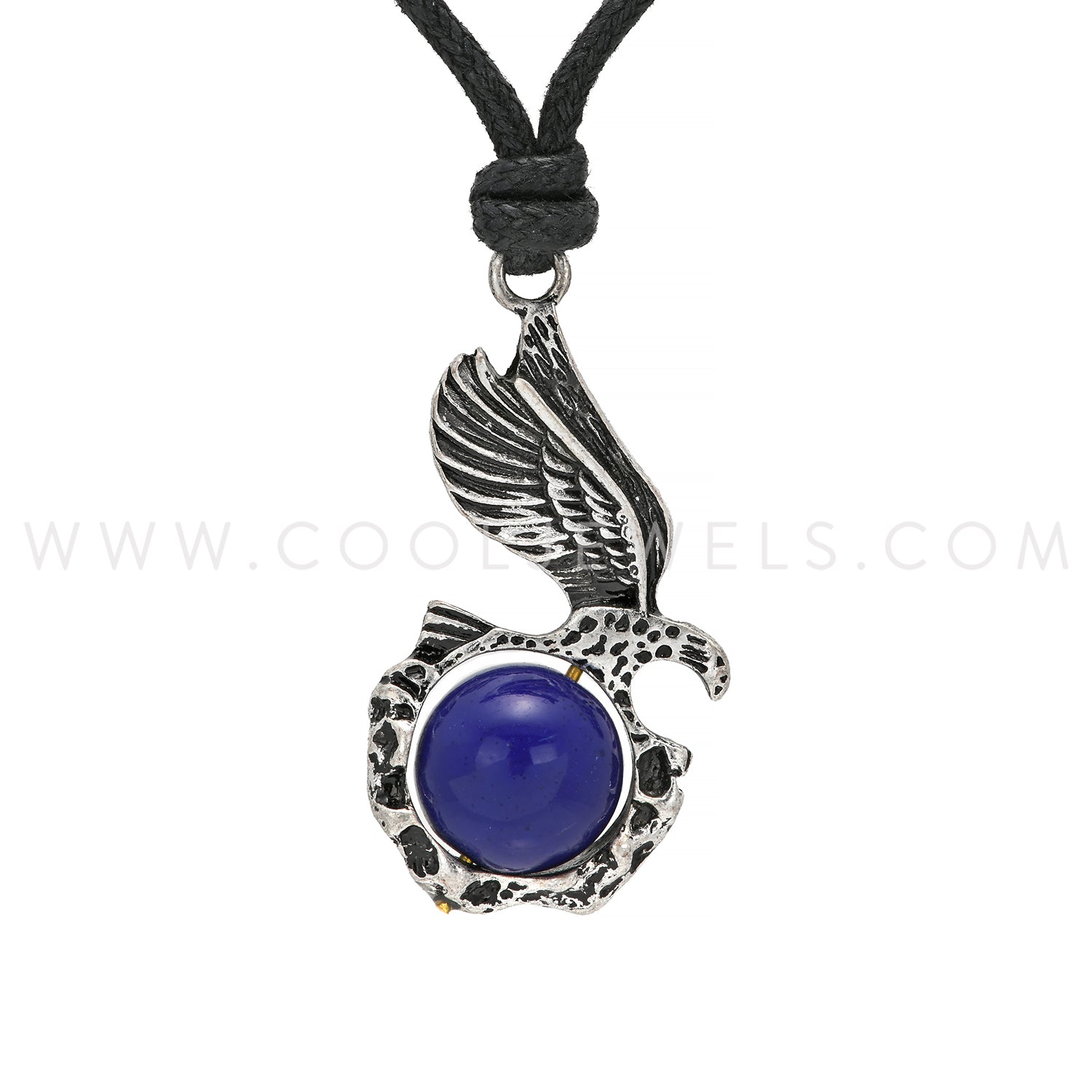 SLIDER CORD NECKLACE WITH EAGLE & GLASS BALL PENDANT - ASSORTED