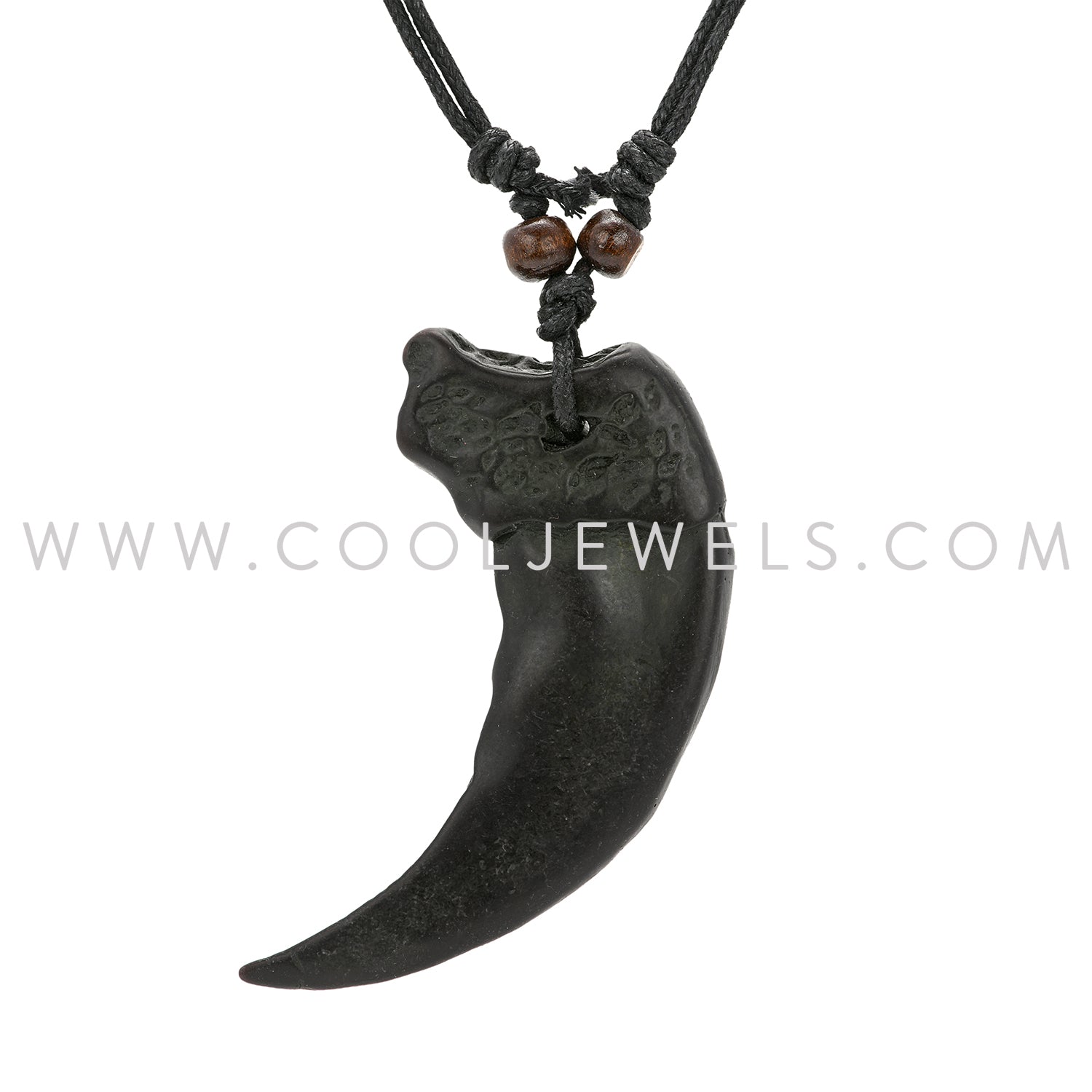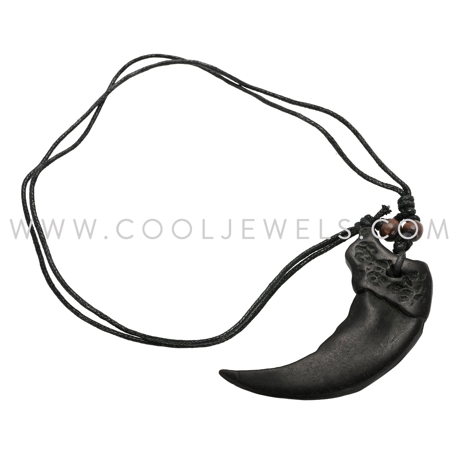These Slider Cord Claw Necklaces feature a black slider cord necklace with a large claw pendant.