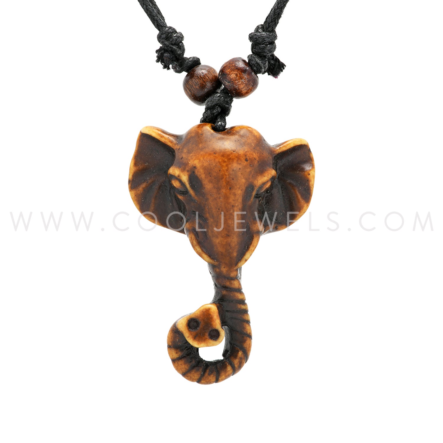 These Resin Elephant Necklaces feature an elephant resin pendant strung on a black slider cord.