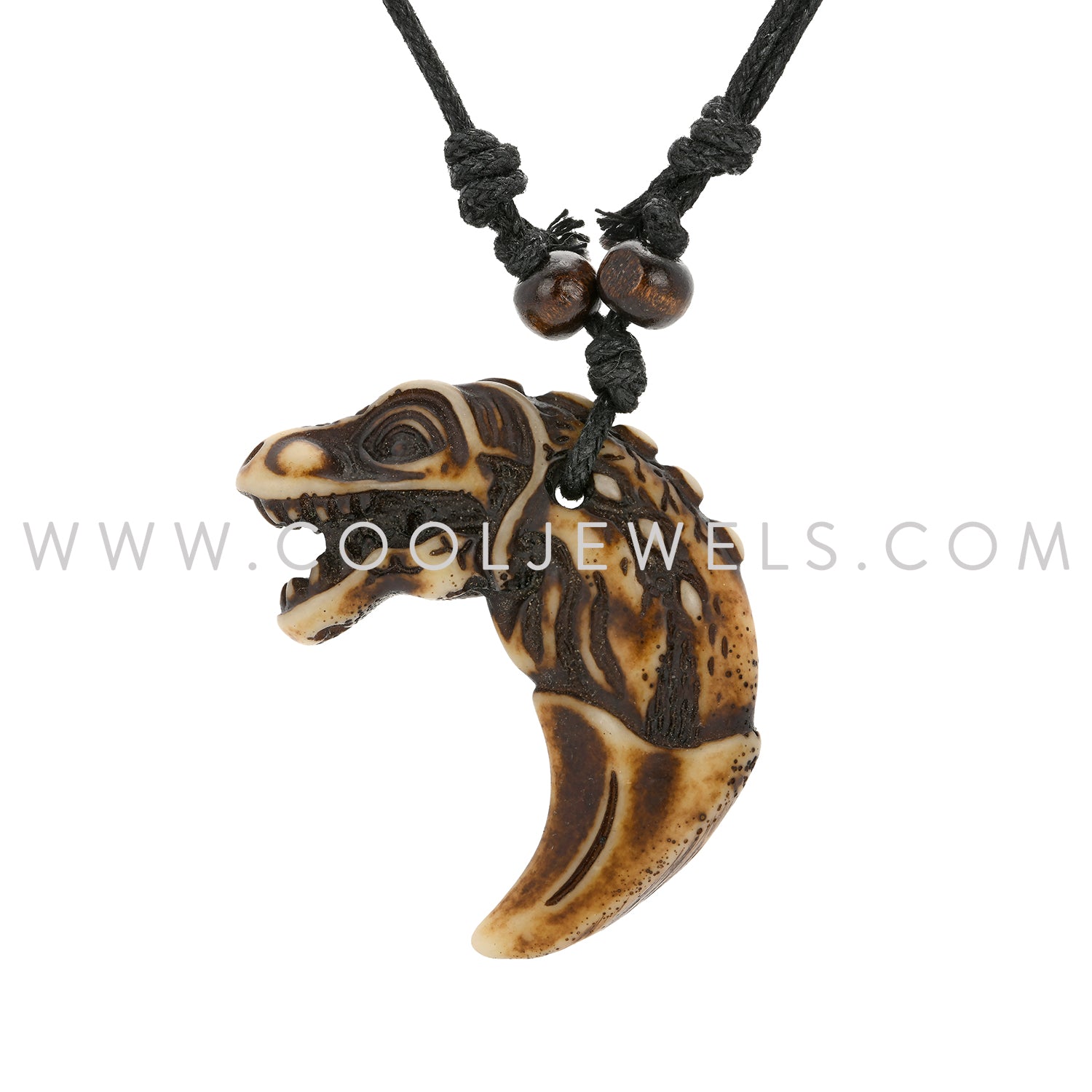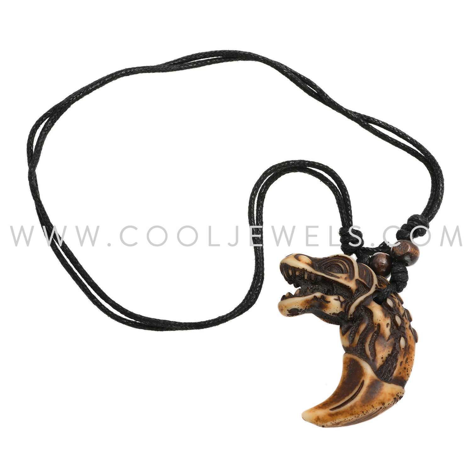This Resin Dinosaur Head Necklace features a 30" slider cord necklace with a resin dinosaur head necklace.