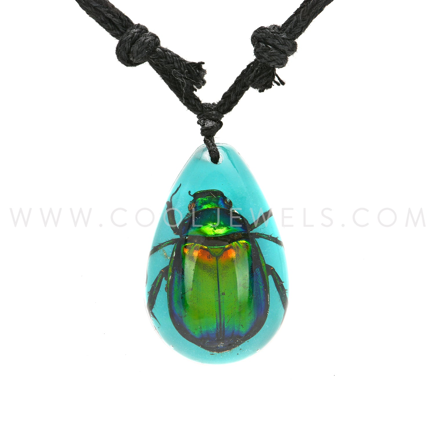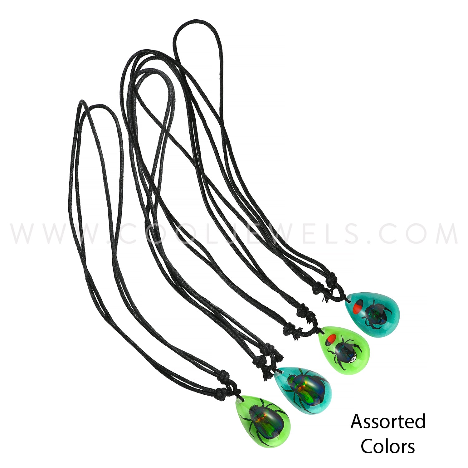 BLACK SLIDER CORD NECKLACE WITH GLOW-IN-THE-DARK BUG PENDANT